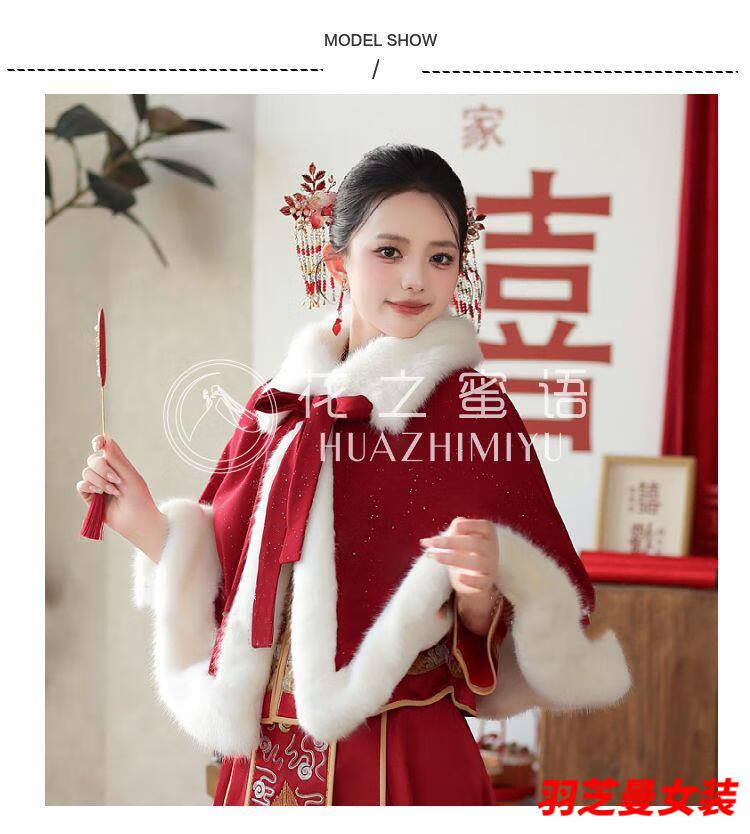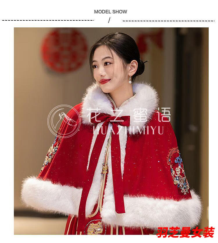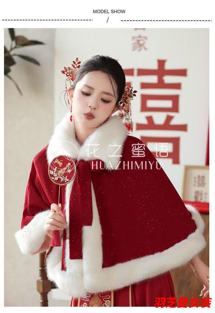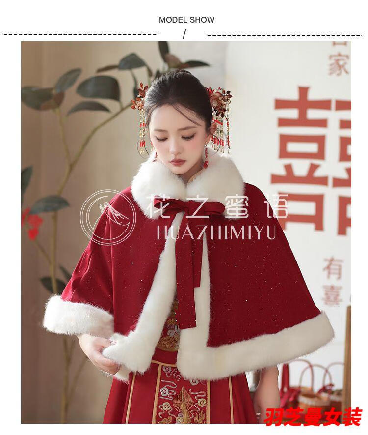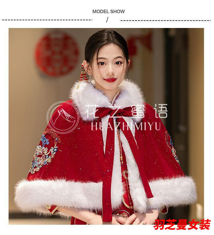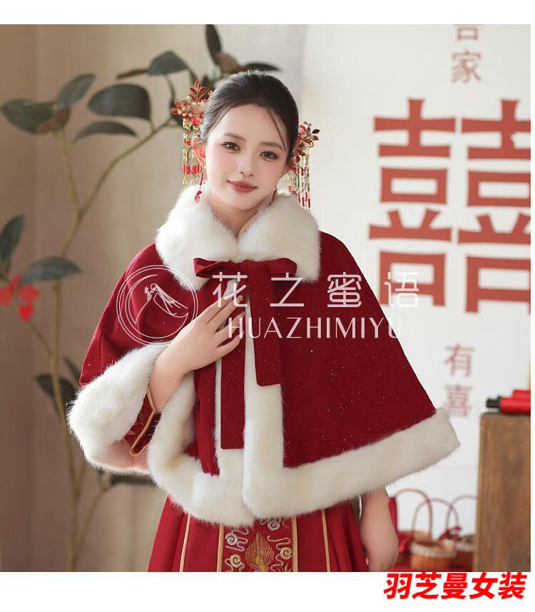 Gu Xicen bride wedding cloak Xiuhe suit shawl winter short cloak Chinese toast warm coat cheongsam fur collar burgundy