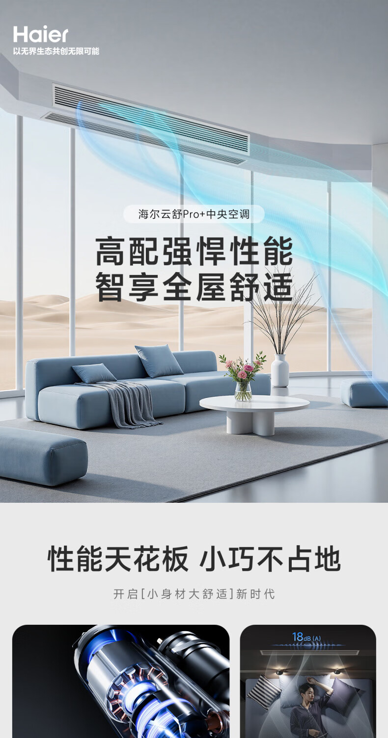 Haier 15% off when placing an order. Central air conditioner, one to four, one to three, Yunshu Pro+, household first-class energy efficiency, full DC frequency conversion, intelligent IoT, self-cleaning, invisible embedded, Yunshu pro+ 5 hp, one to three, two rooms and one living room 110