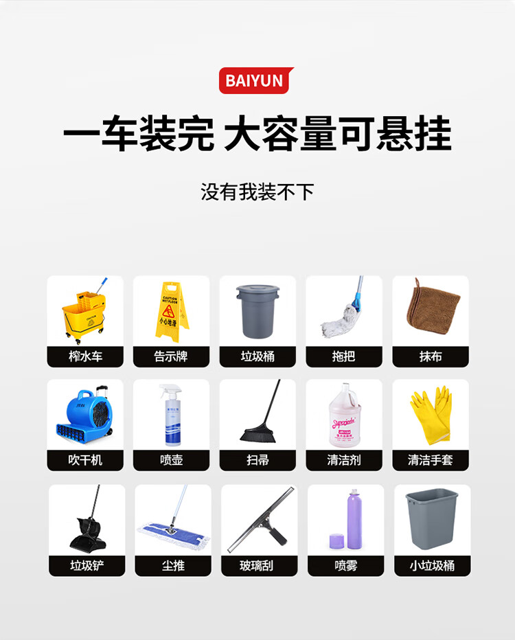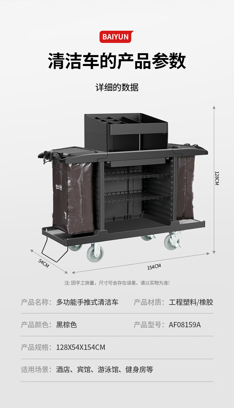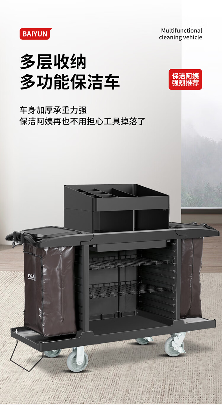 Baiyun cleaning trolley multi-functional cleaning vehicle guest room cleaning vehicle hotel linen vehicle room entrance hygiene service vehicle AF08159A AF08159B
