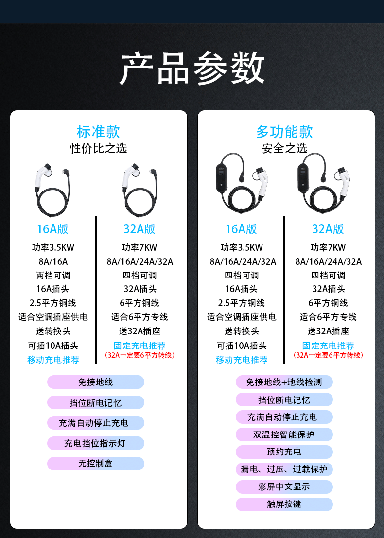 Jingbao Dian Lantu FREE car charger 3.5kw/7kw portable home charging gun without grounding wire charging pile Lantu FREE display model 3.5KW 8A/16A two-speed switch 10 meters cable