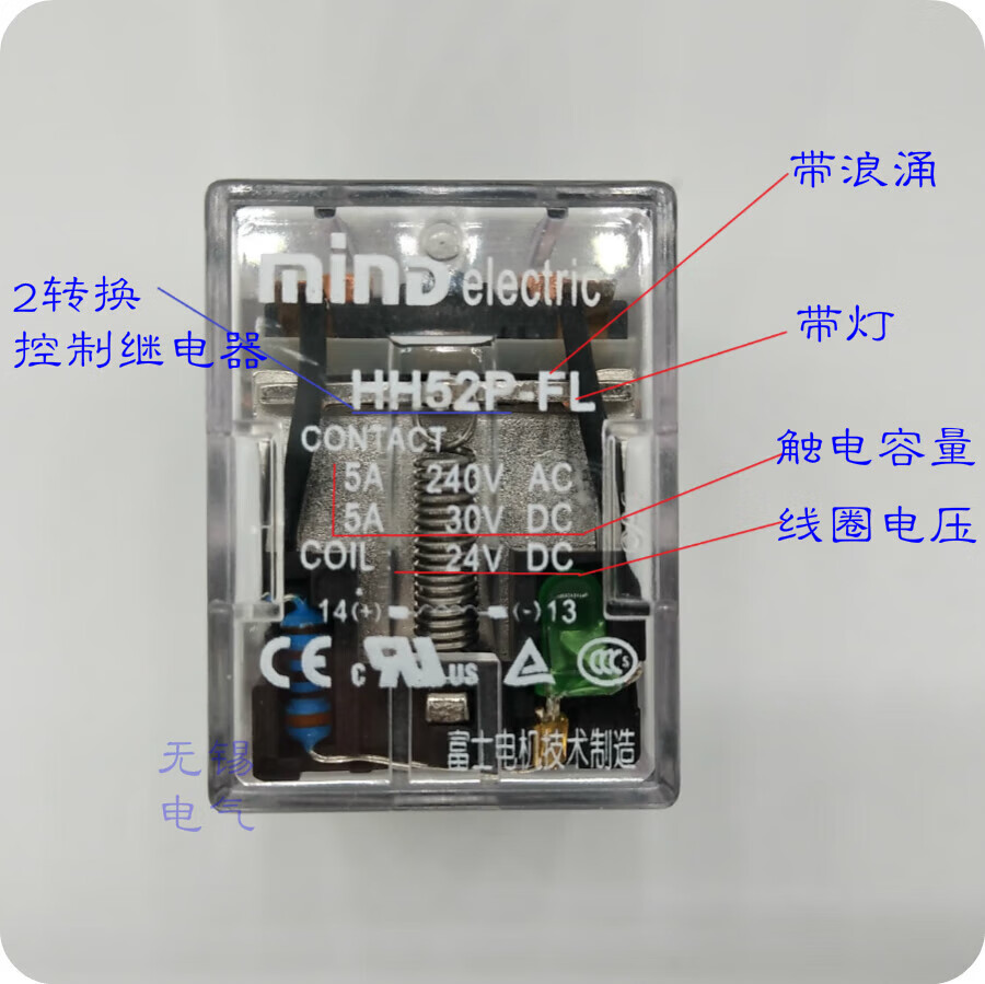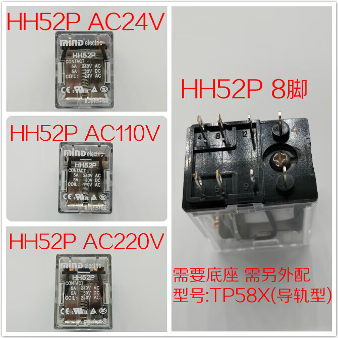 MIND Wuxi Mingda relay 52P52P-L52P-FL52PC with base TP58X 52P DC DC24V DC12V DC110V