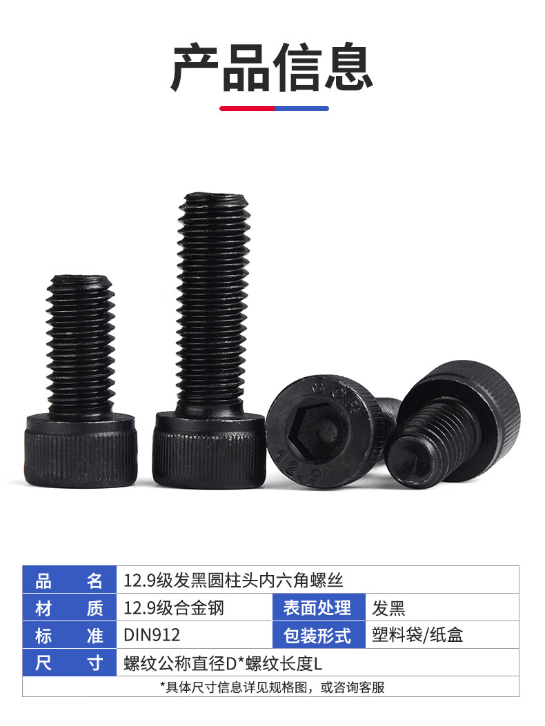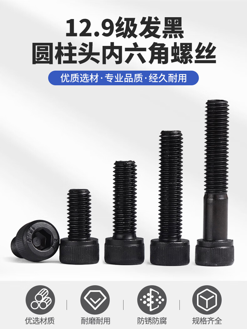JINGGONG half-thread 12.9 grade extended hexagon socket screws high-strength bolts m5m6m8m10m12m16m20m24-36 M12*80 (10 pcs)