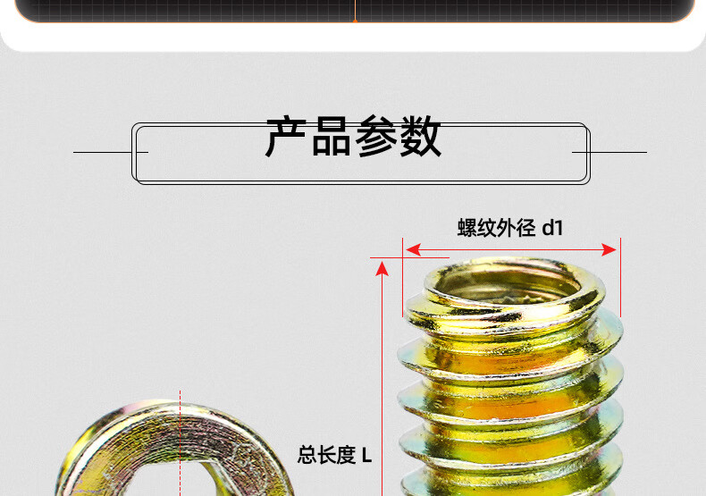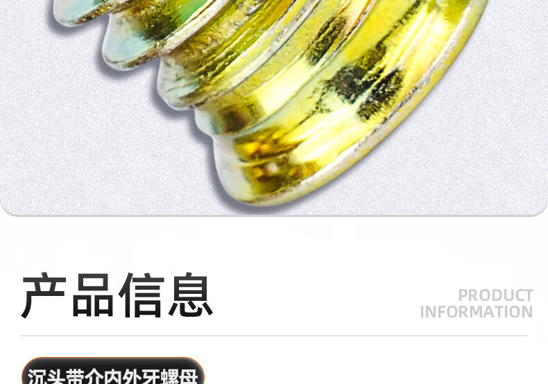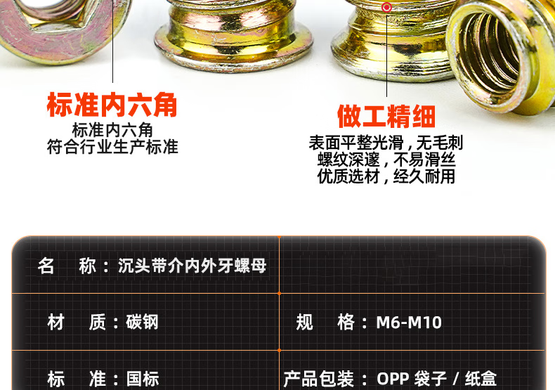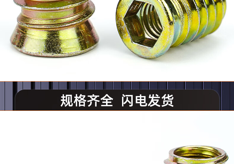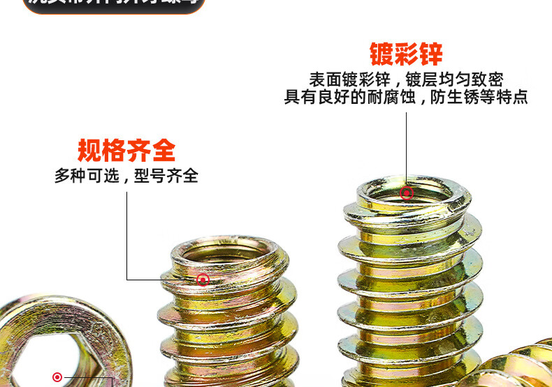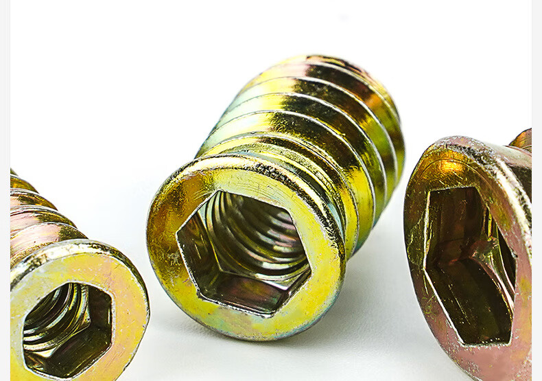 Jans hardened countersunk head hexagonal embedded nut iron internal and external teeth furniture nut with media without media color zinc straight-through connector M8*25 screw + nut (20 sets)