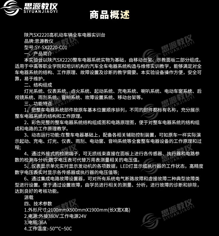 Siyuan Teaching Instrument Shaanxi Automobile SX2220 High Mobility Vehicle Full Vehicle Electrical Training Station Operable Full Vehicle Circuit Model Teaching Board