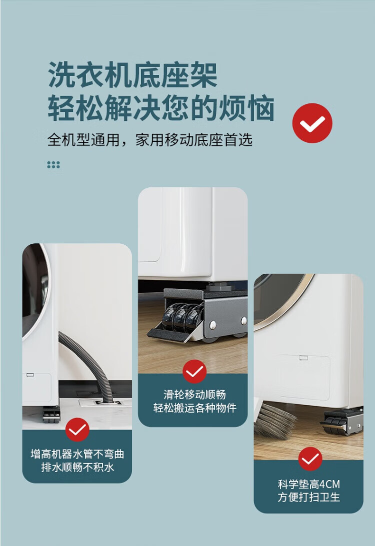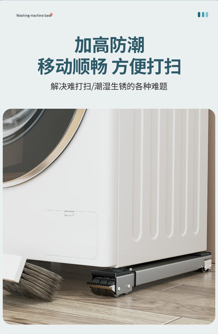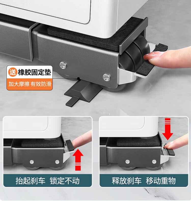 JCZS German washing machine base shelf universal wheel refrigerator storage bracket universal roller pulley removable anti-silver gray 28 wheels retractable brake design