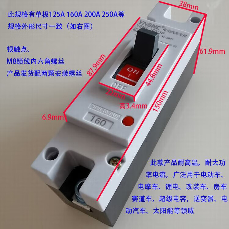 Electric vehicle DC air switch high power air switch molded case circuit breaker 100A125A200A300A600A power outage 300A 1P