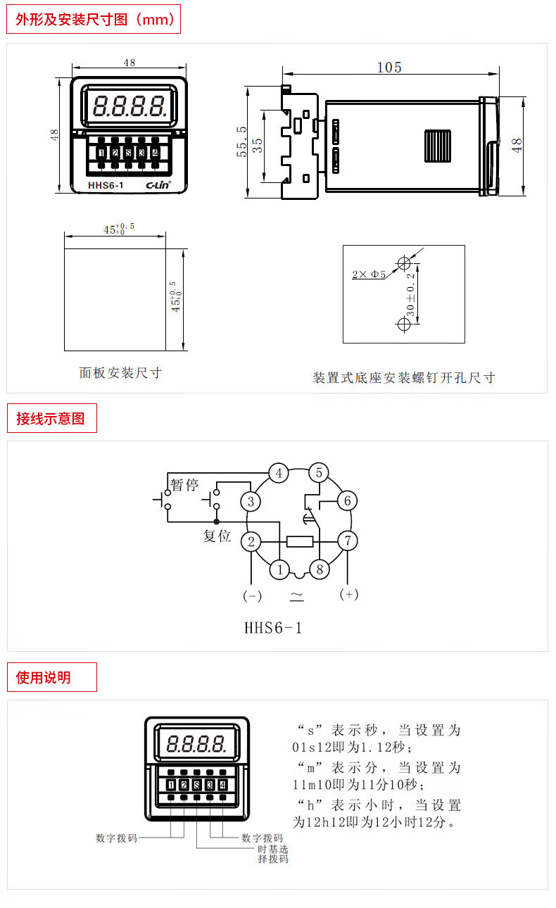 Xinling brand HHS6-1 DH48S AC220 24V pause reset digital display delay time relay with base AC220V