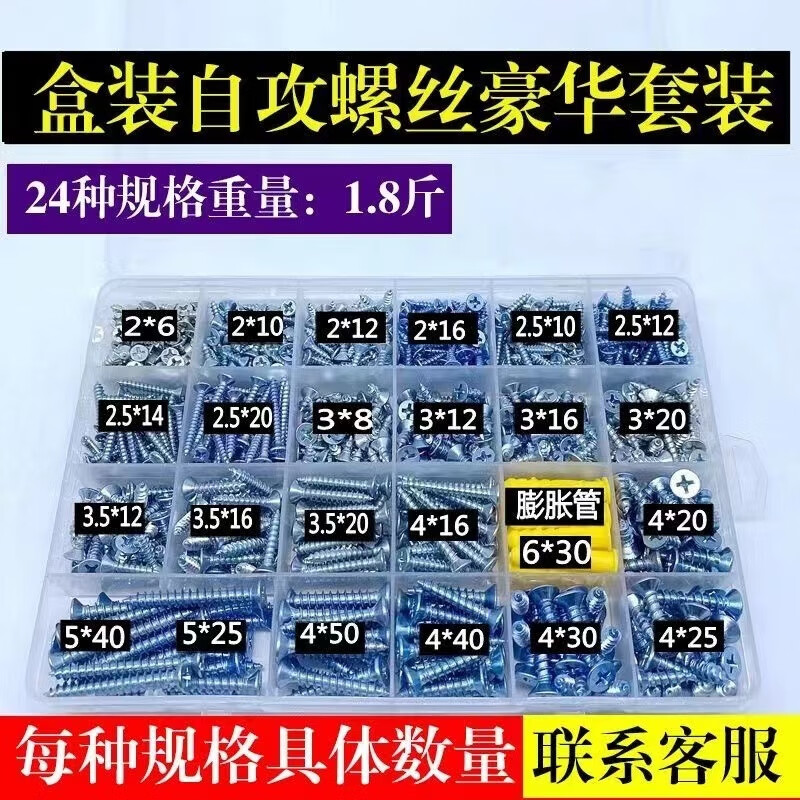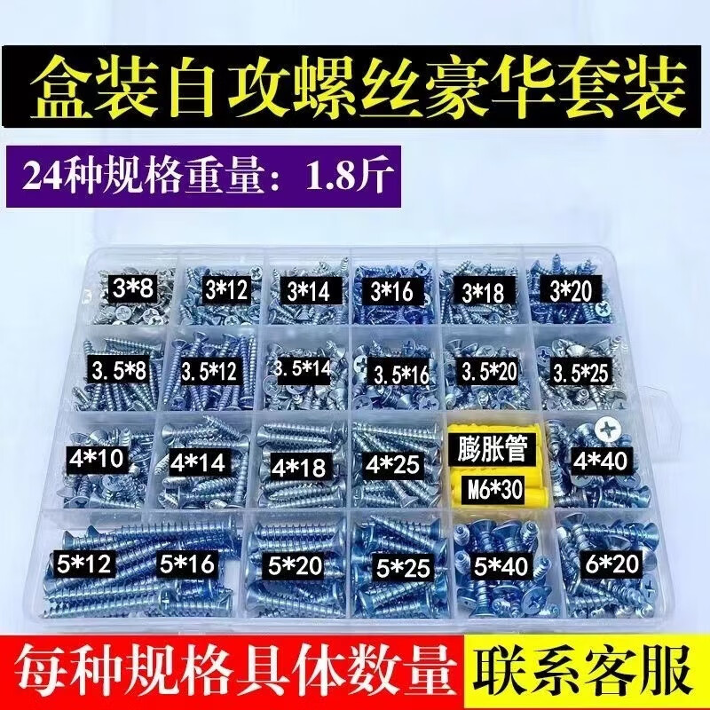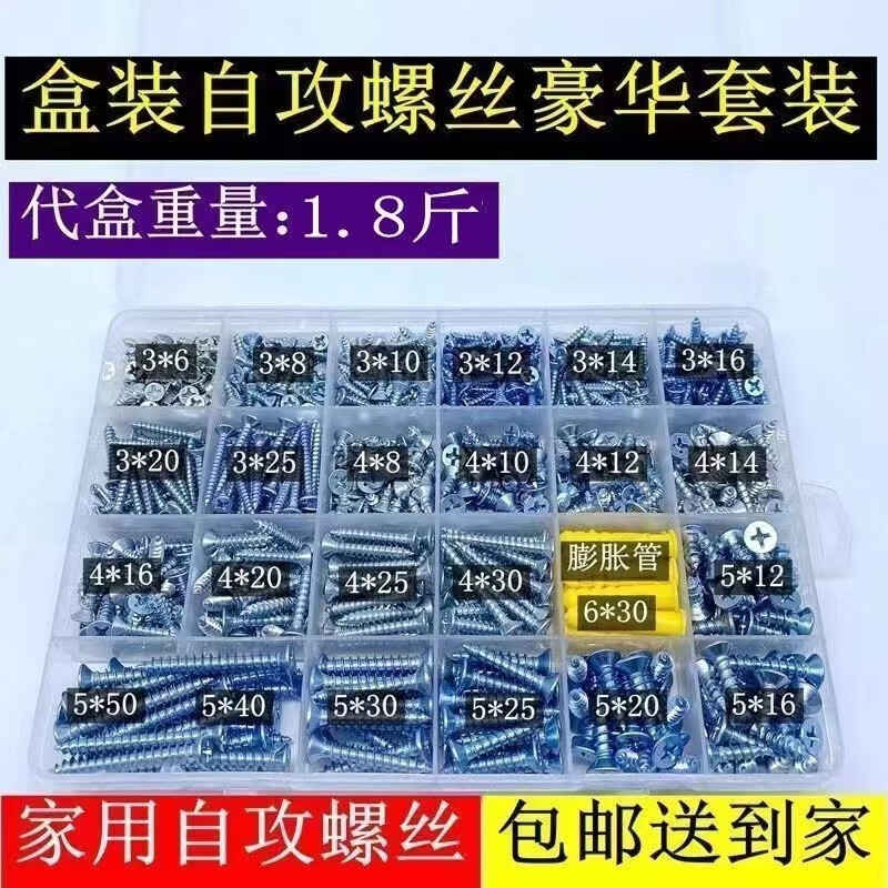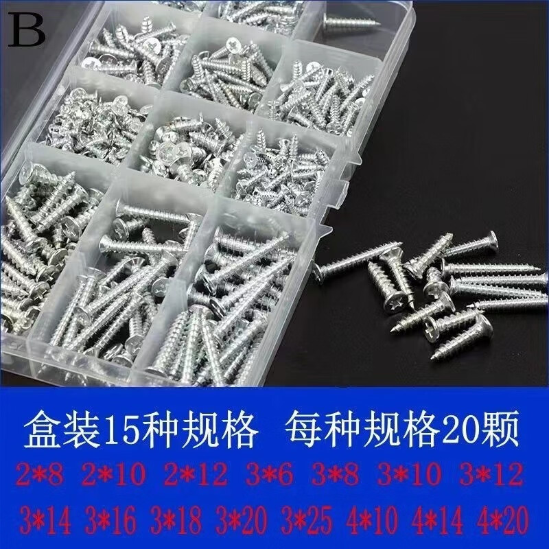 Qinkai Self-tapping Screw Set Household Combination DIY Cross Wood Screw Boxed M3M4M5 Self-Tapping Screw Mixed 15 Specifications E Set Boxed