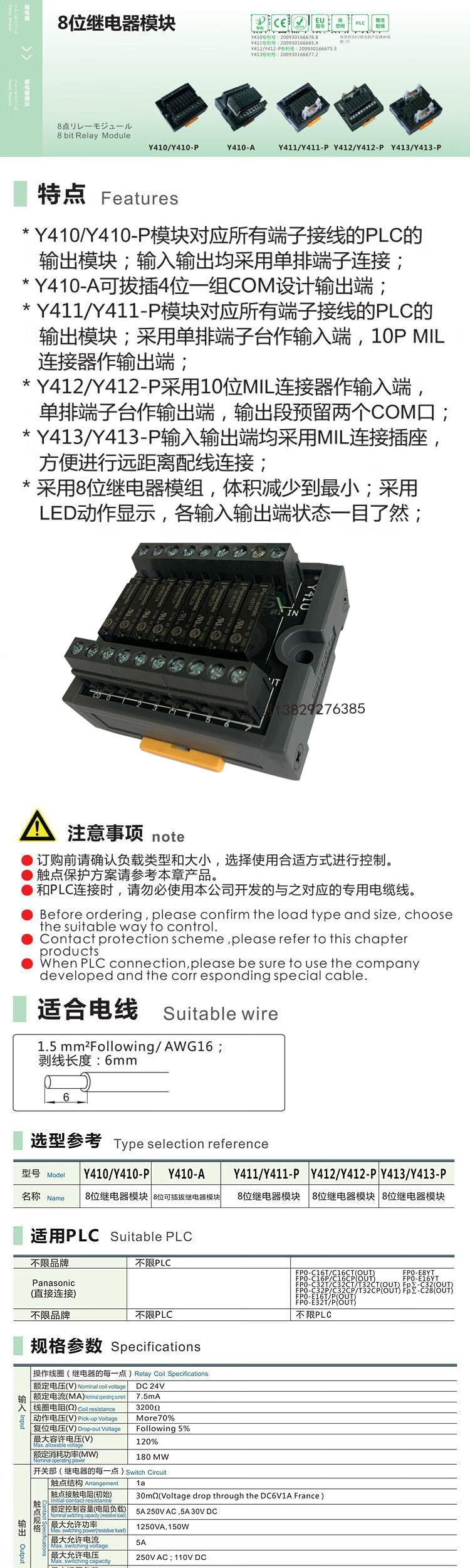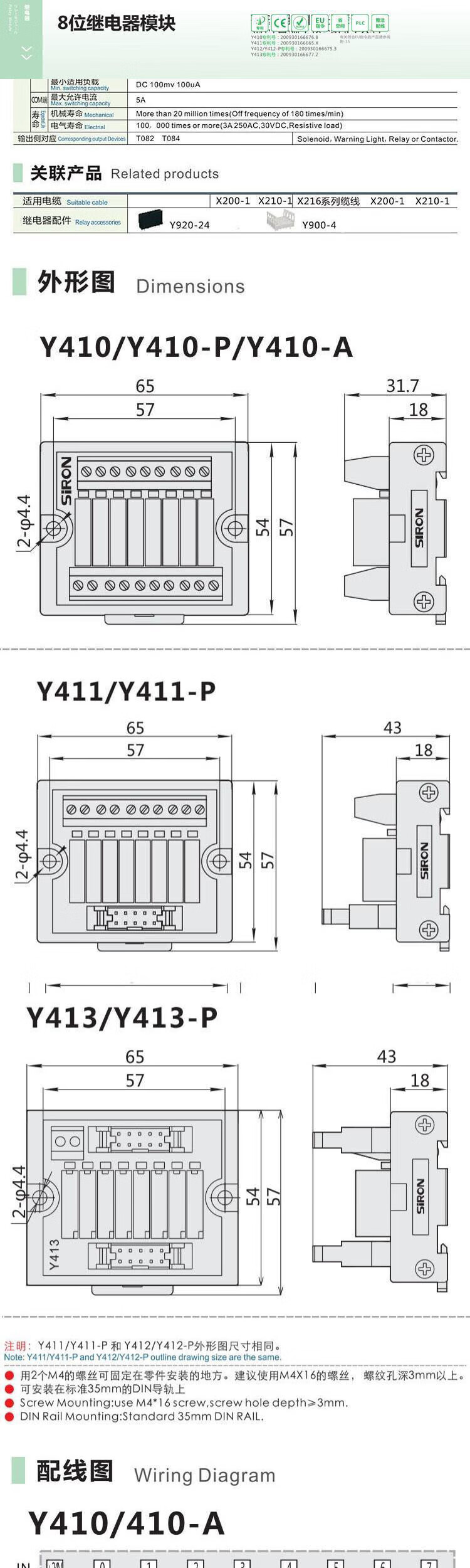 SIRON4/8 eight-bit relay module Y410 Y400-P pluggable Y410-AT/DC24V Y410-P-5V -P pluggable Y410-AT/DC24V Y410