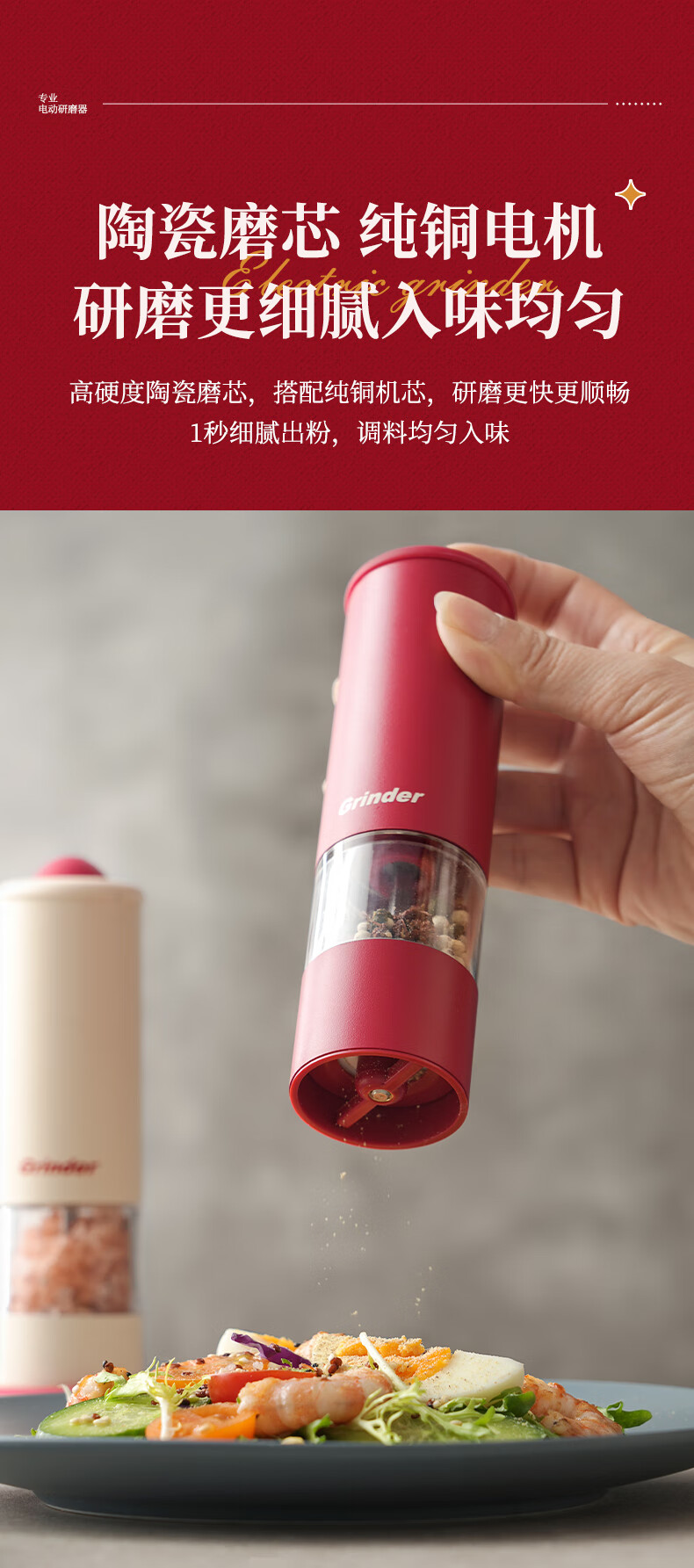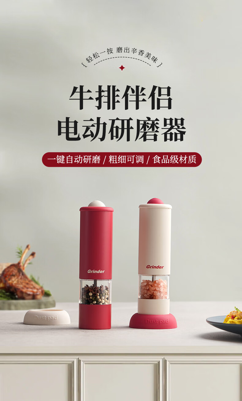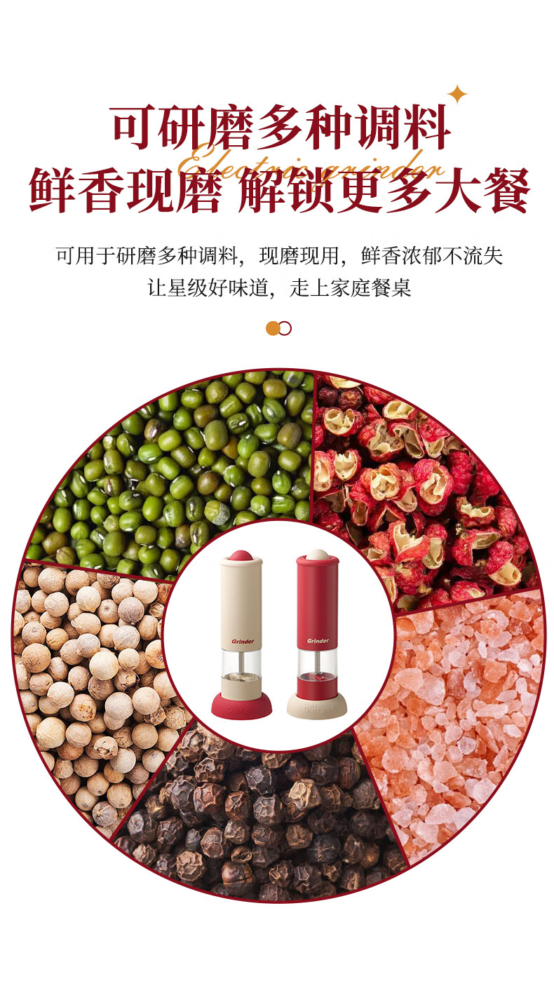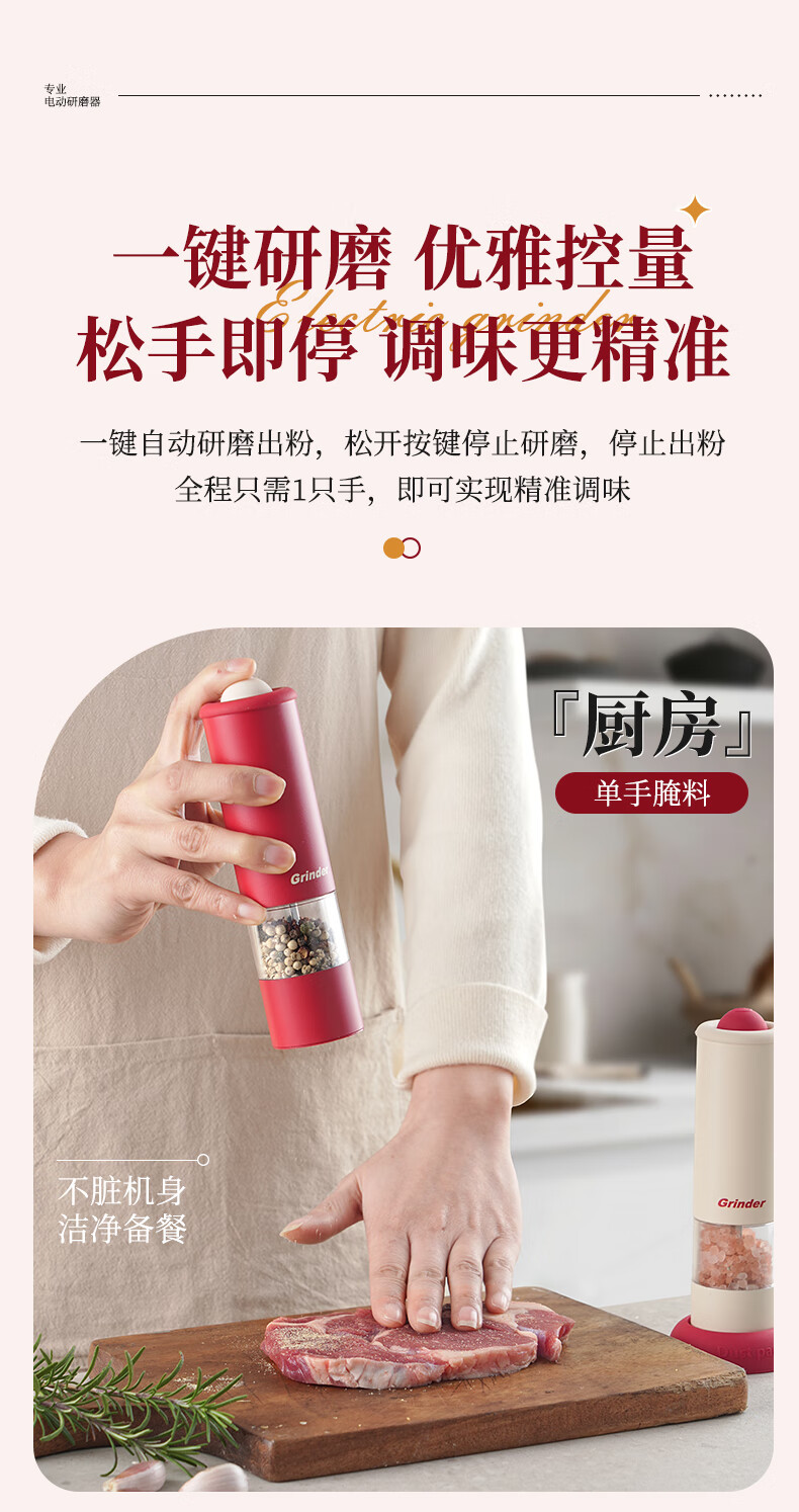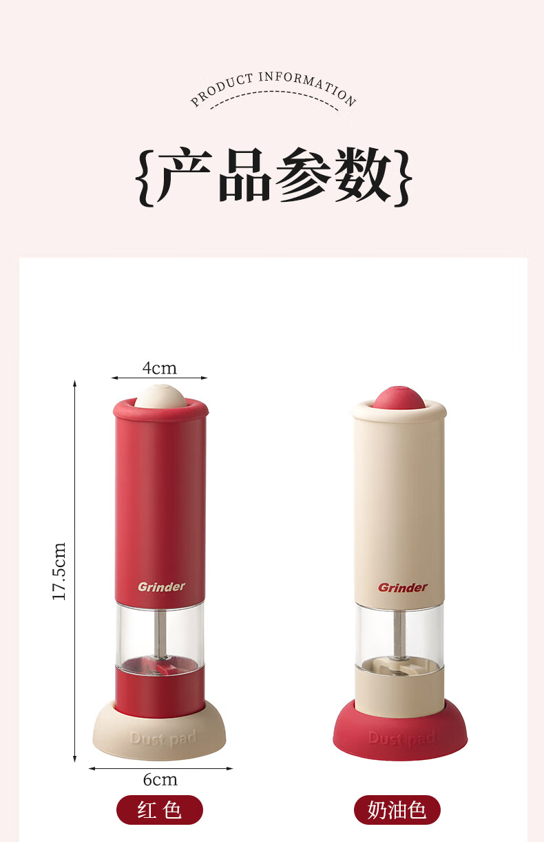 TREEJACK electric pepper grinder household kitchen seasoning black peppercorns peppercorns sea salt grinding artifact automatic grinder electric grinder cream white