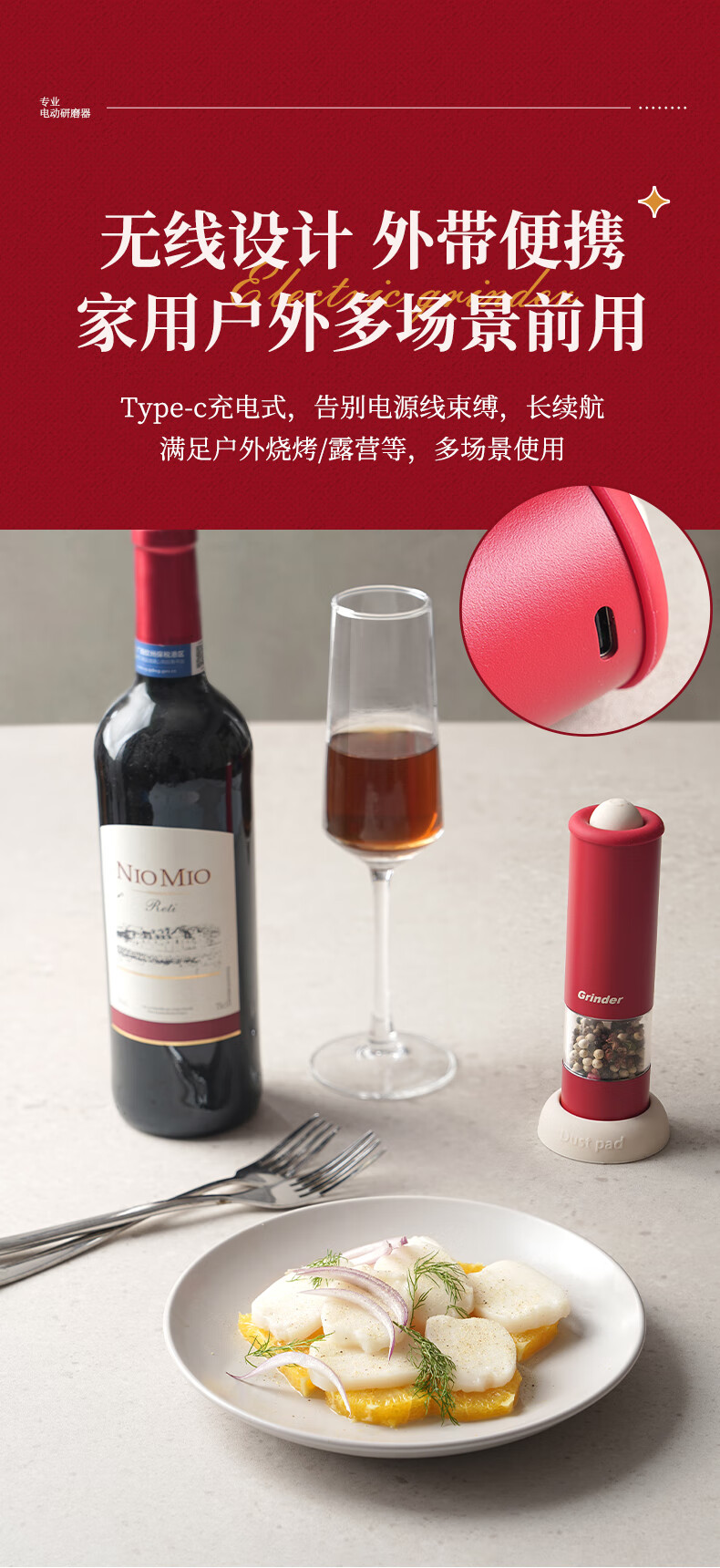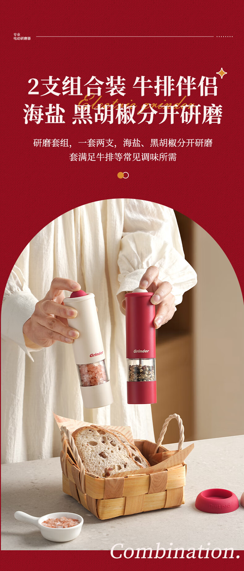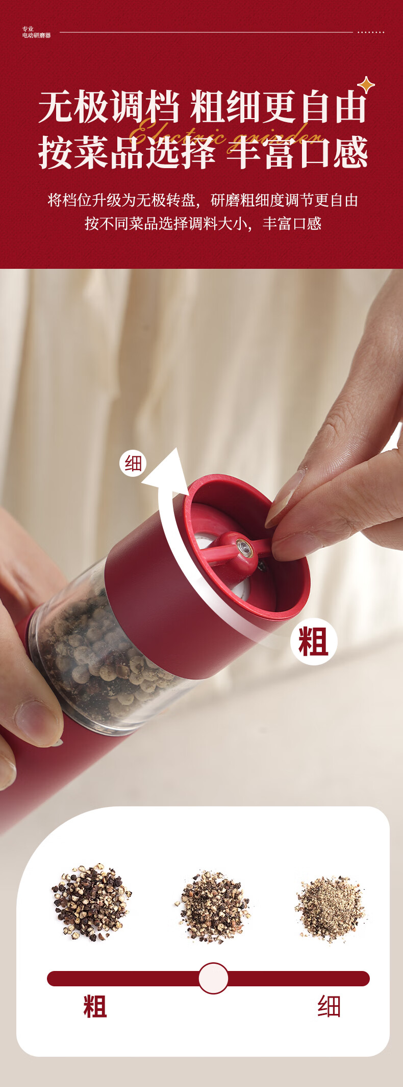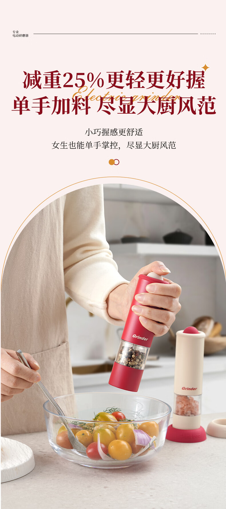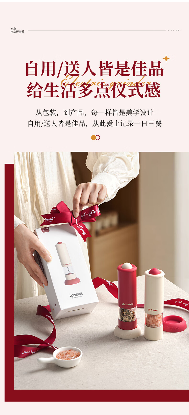 TREEJACK electric pepper grinder household kitchen seasoning black peppercorns peppercorns sea salt grinding artifact automatic grinder electric grinder cream white