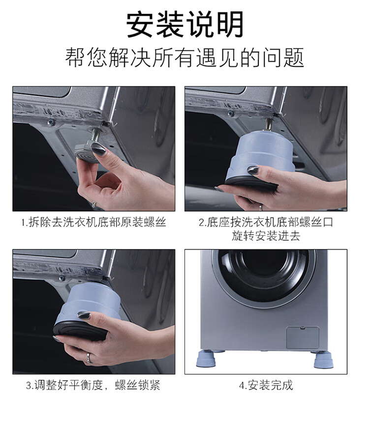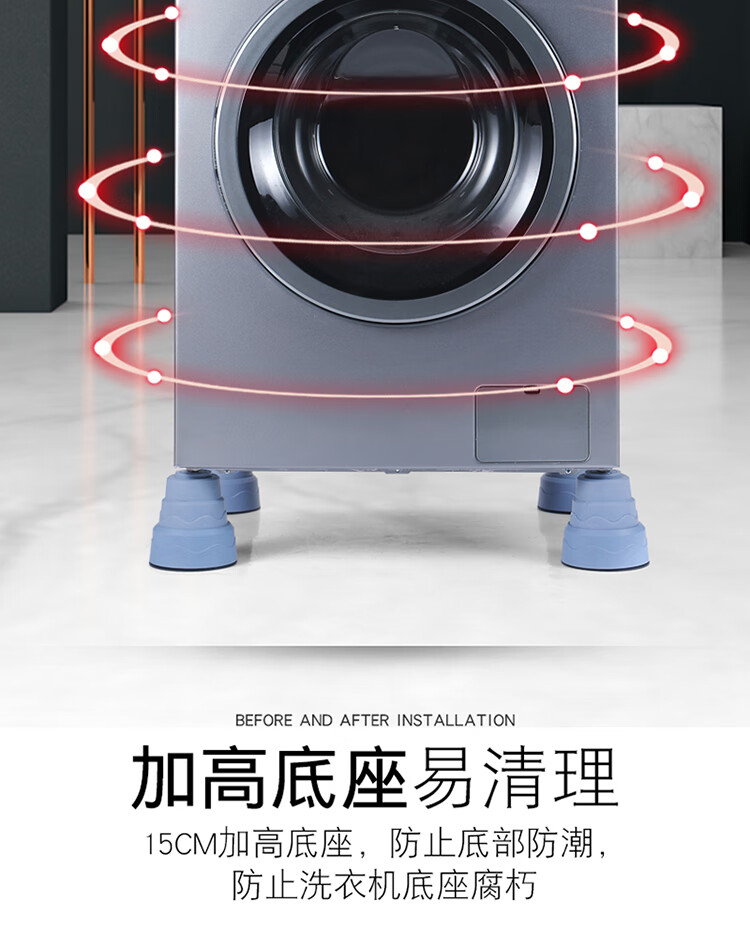 Suitable for Little Swan washing machine base elephant foot drum bracket 8/10/12 kg shockproof pad high stand dark gray-elephant foot 4 pack height 7-9cm 1 layer