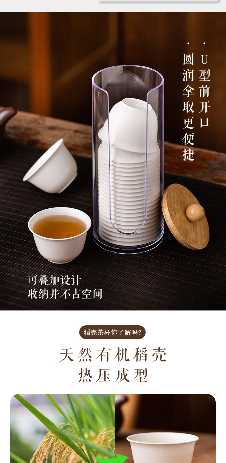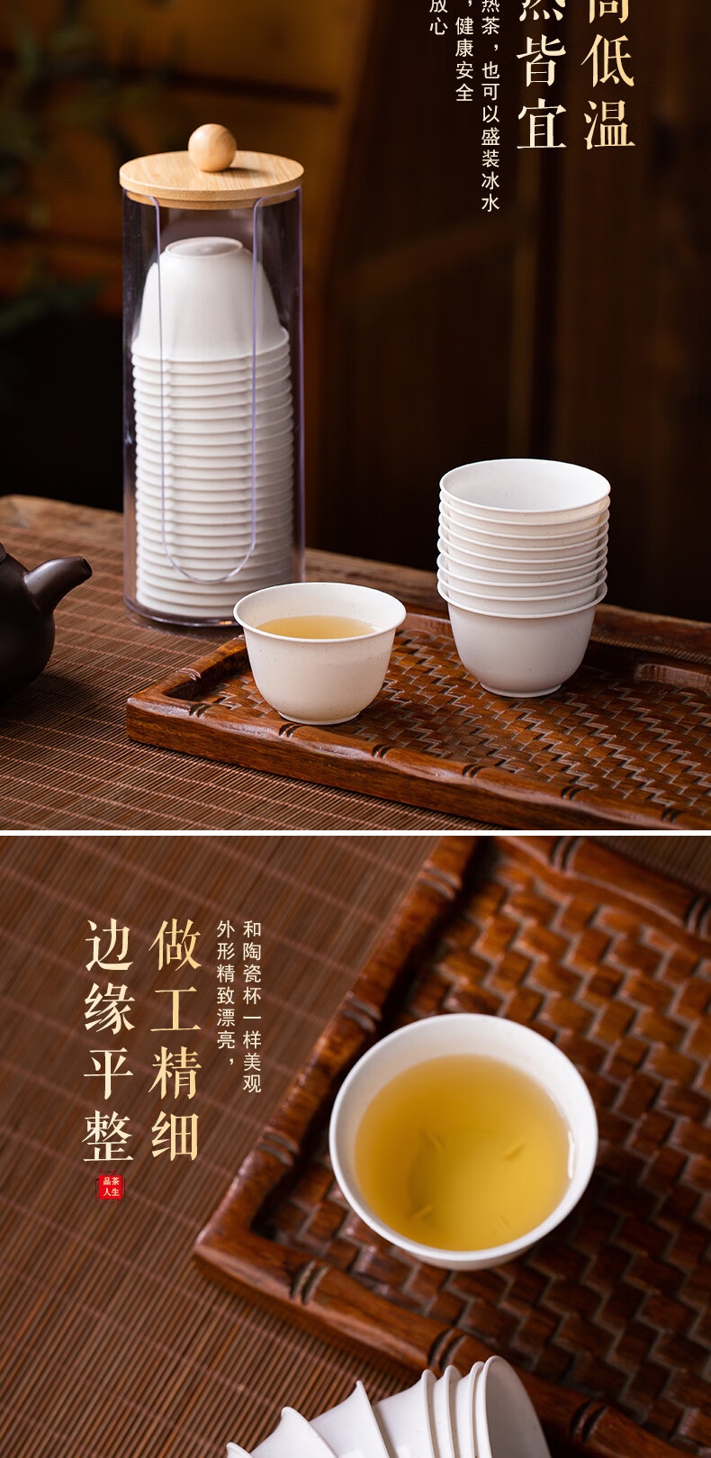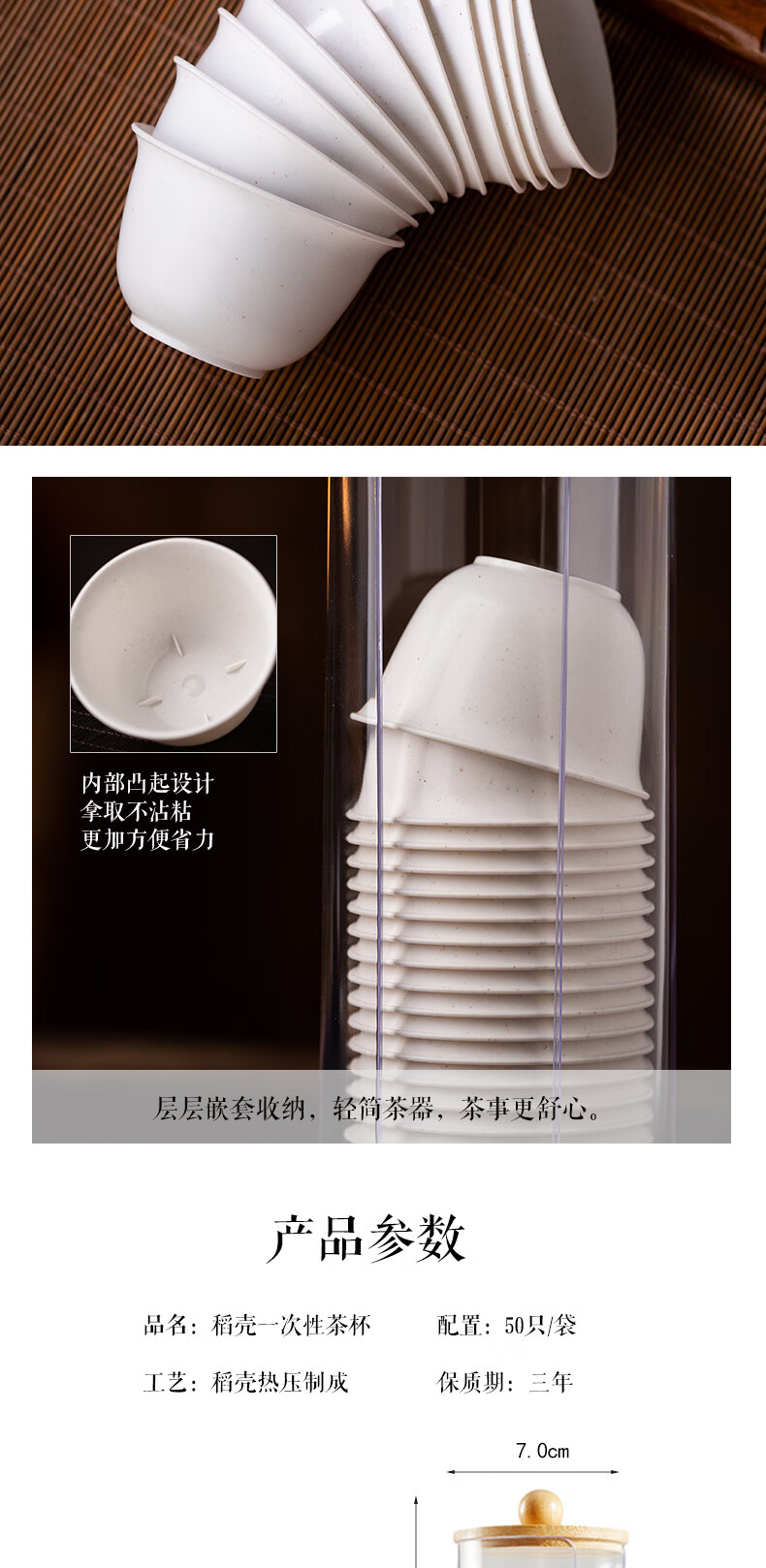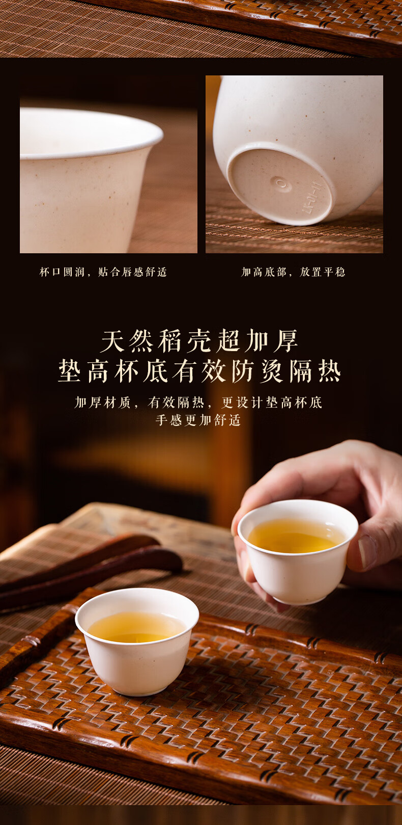 Disposable Kung Fu tea cup, high-end tea cup, rice fragrant cup, small tea cup, rice husk tea cup, hardened, thickened and anti-scalding, white 50 pieces + cup holder