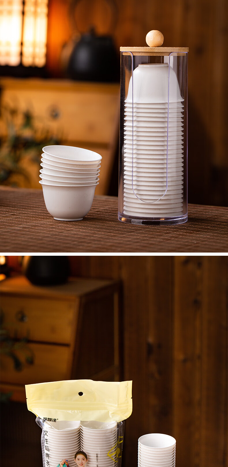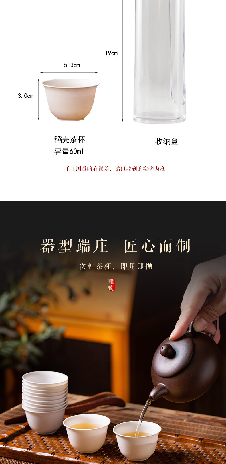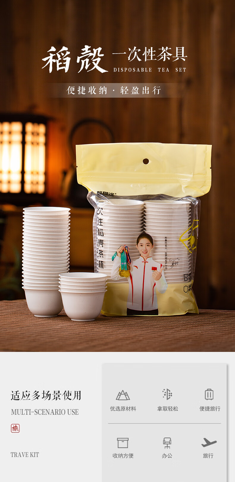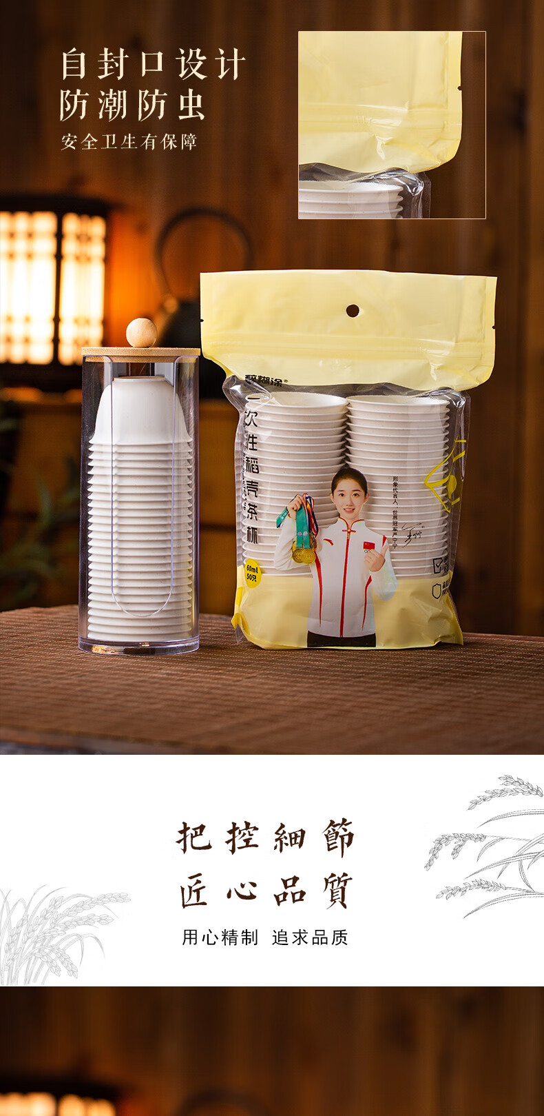 Disposable Kung Fu tea cup, high-end tea cup, rice fragrant cup, small tea cup, rice husk tea cup, hardened, thickened and anti-scalding, white 50 pieces + cup holder