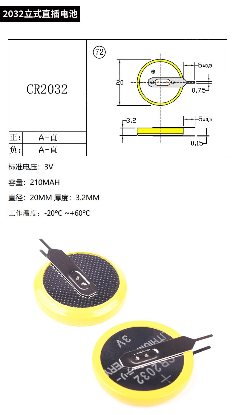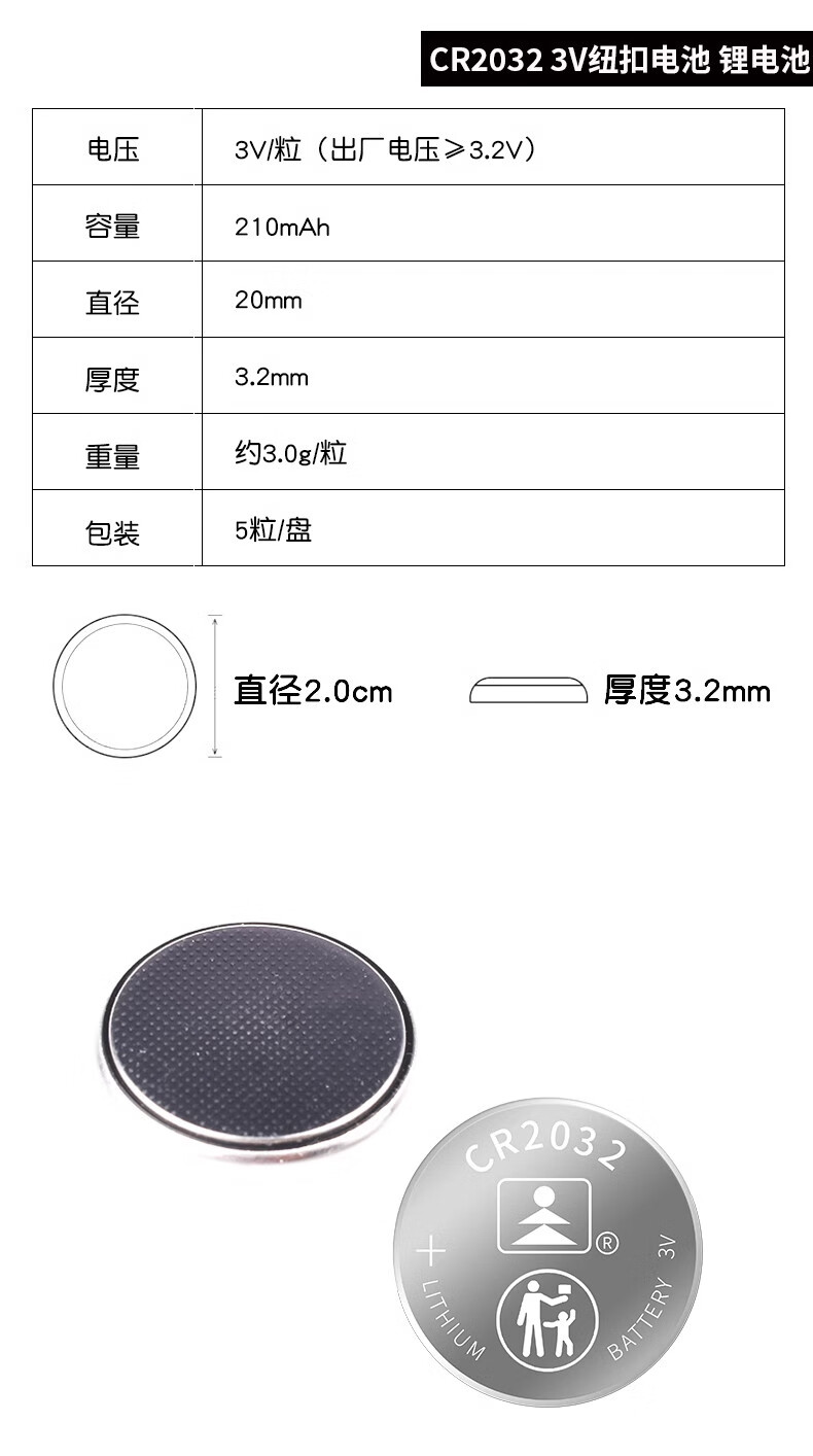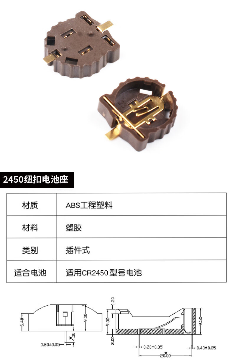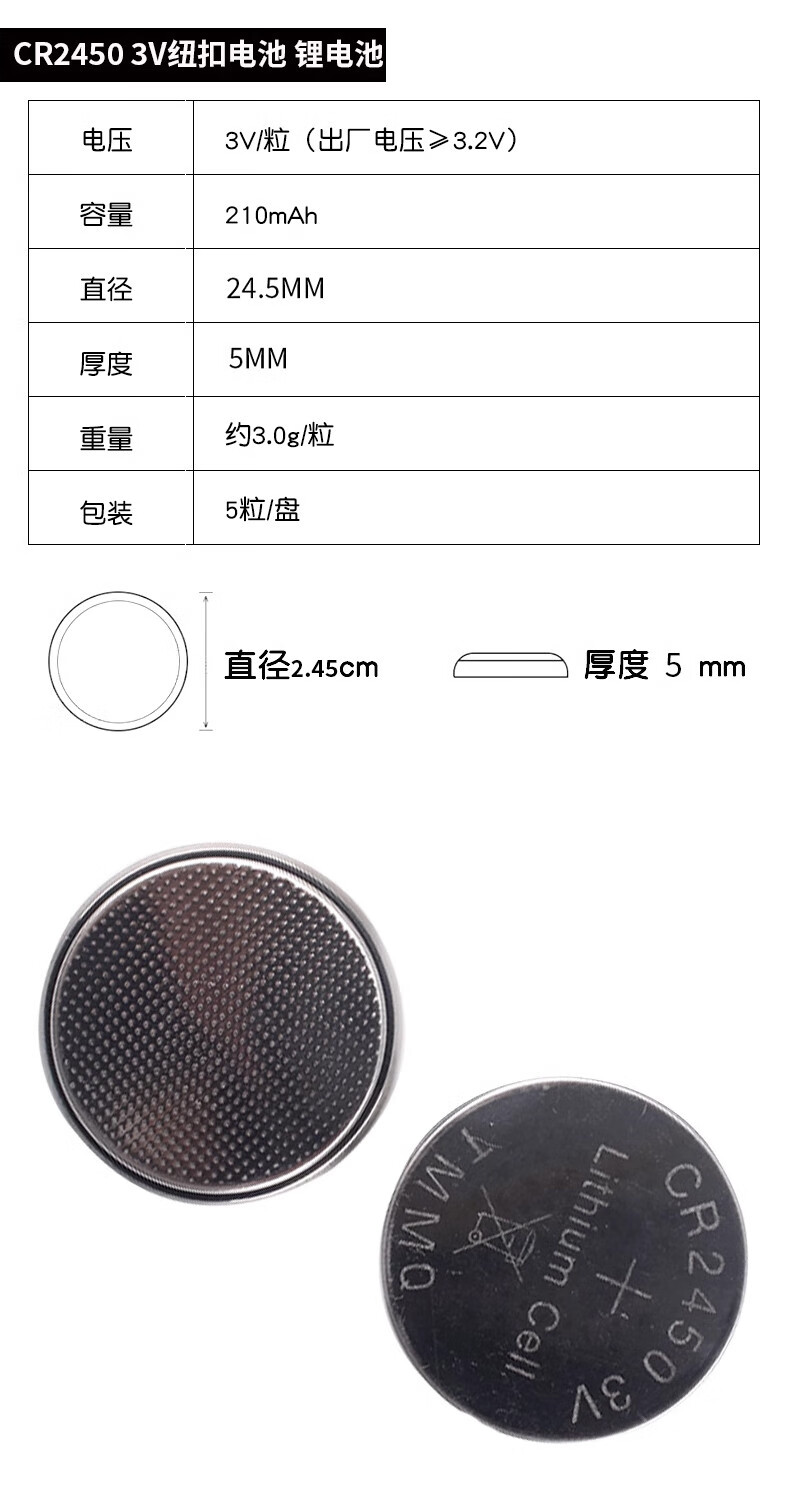 CR2032/2016/2025/2450/1220 button battery 3V patch battery holder/box vertical horizontal 2450 button battery (5 pieces)