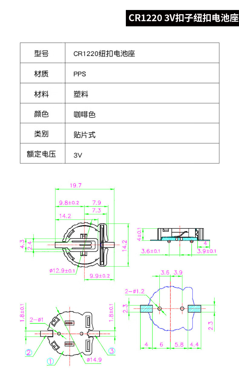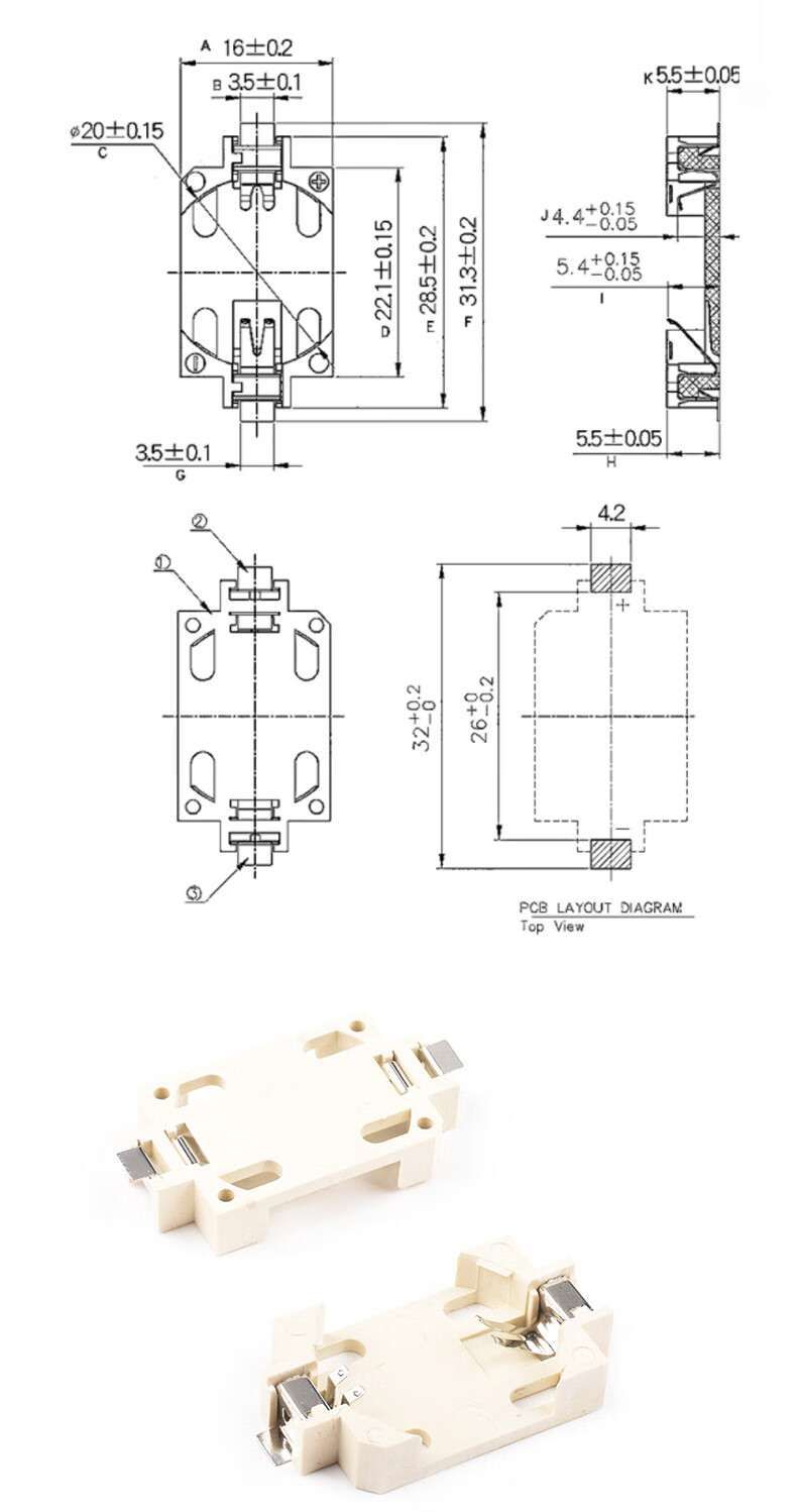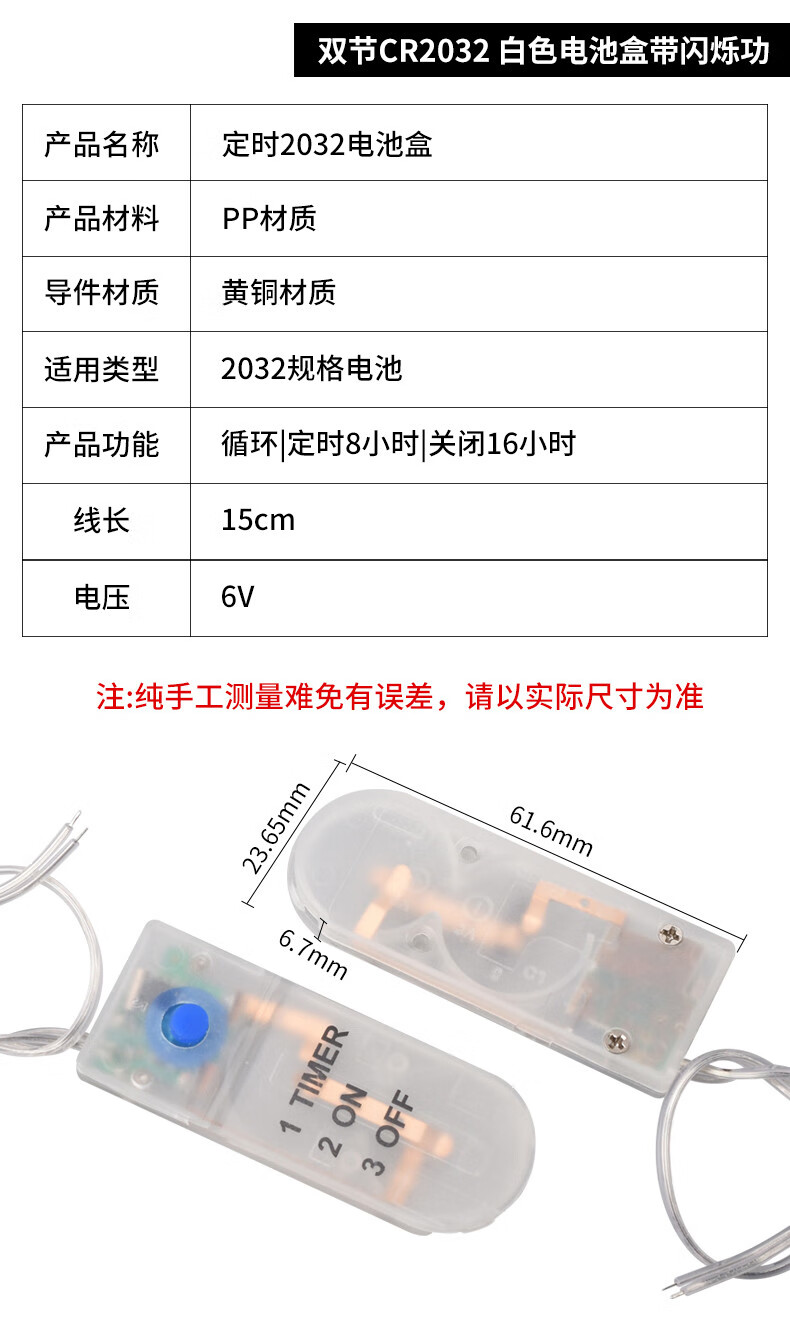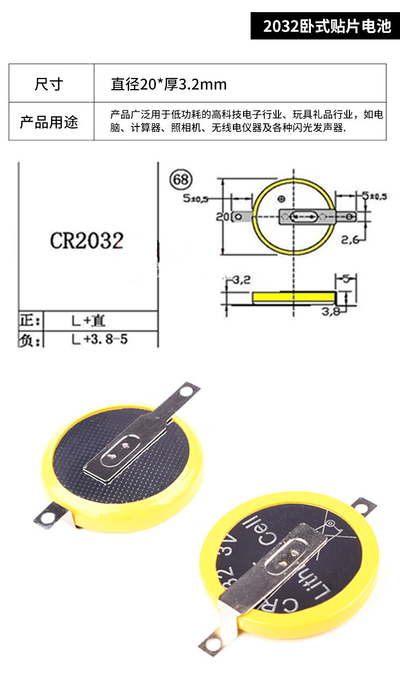 CR2032/2016/2025/2450/1220 button battery 3V patch battery holder/box vertical horizontal 2450 button battery (5 pieces)
