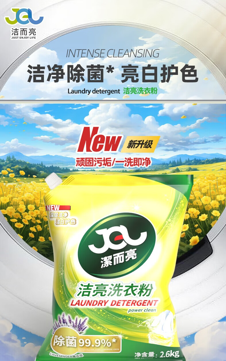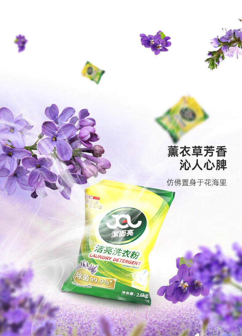 Clean and bright sterilizing laundry detergent, lavender with long-lasting fragrance, strong cleaning of stubborn stains, smooth and clean, affordable household package 2.6kg 2.6kg large package sterilizing washing powder * 1 bag