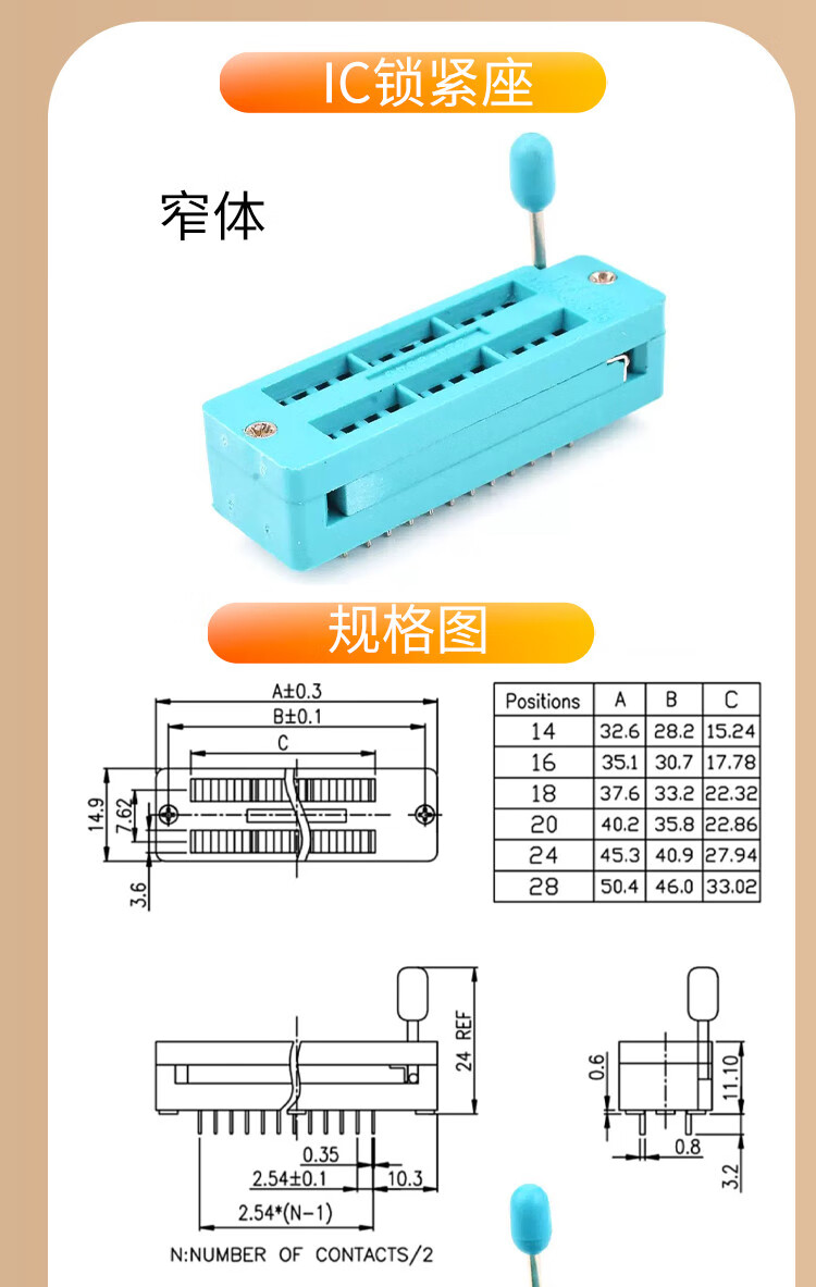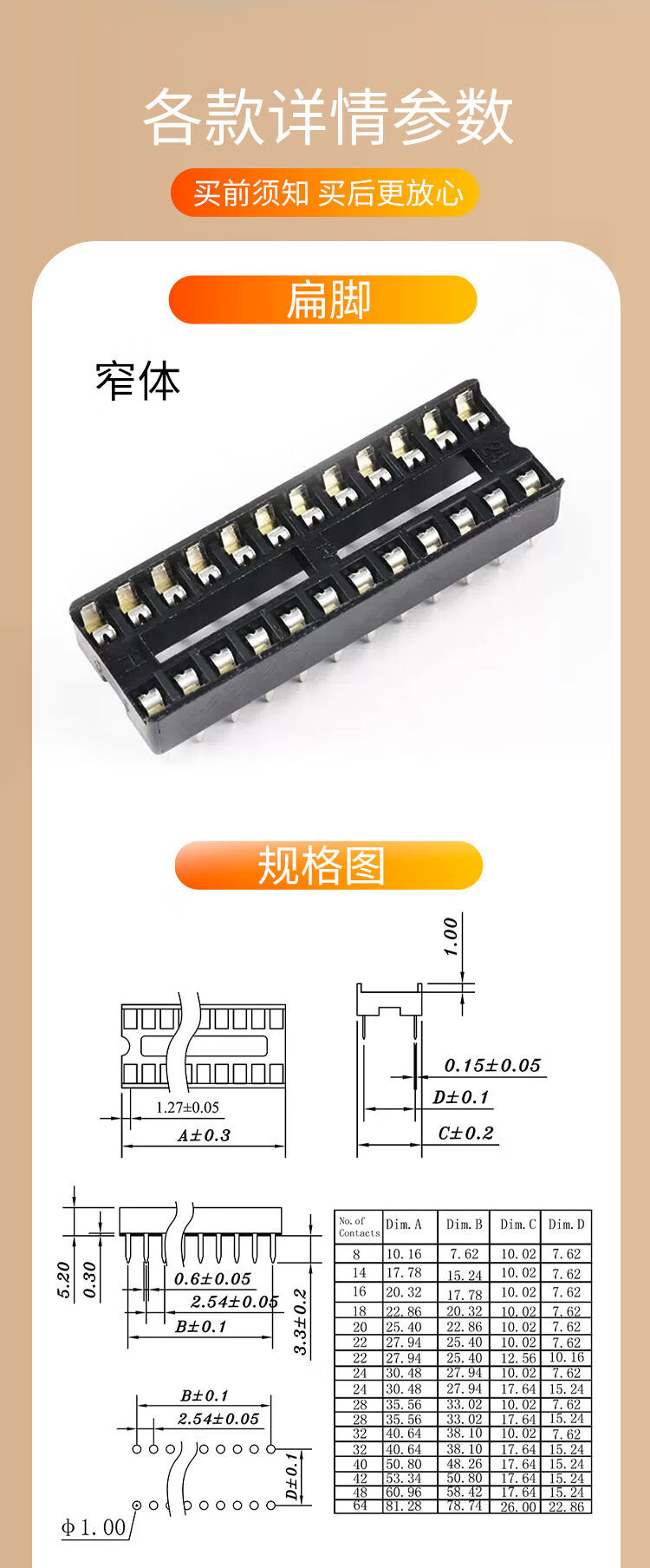 IC socket integrated block microcontroller DIP direct plug 8P14P16P20P24P28P40p pin 16P flat pin (30 pieces)