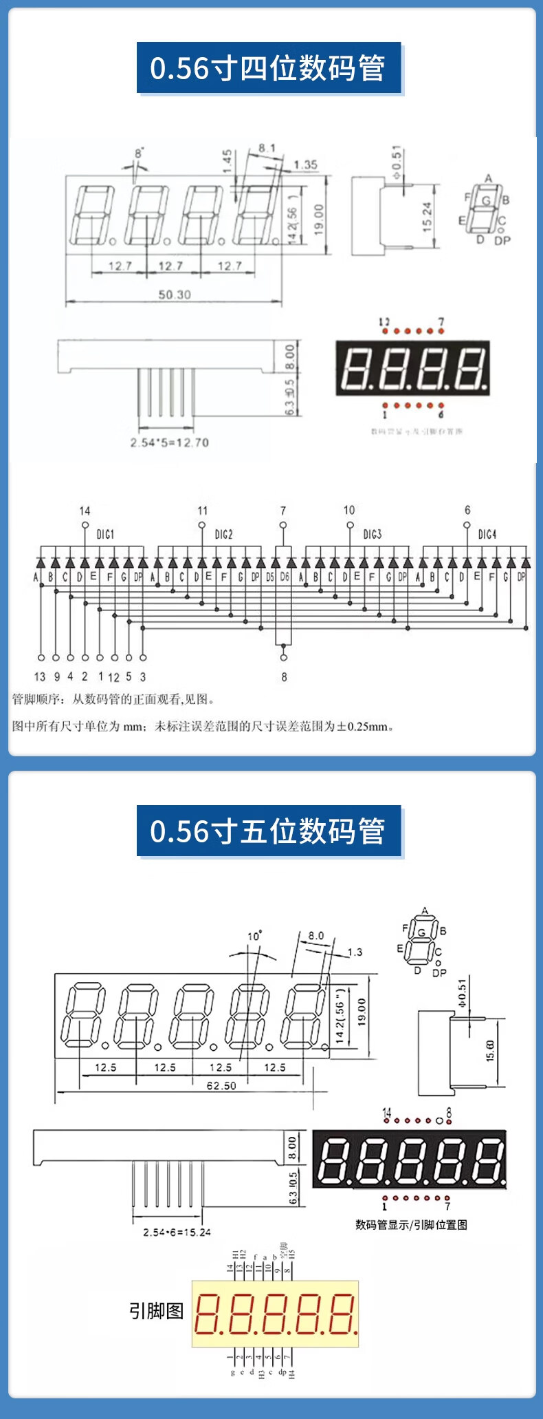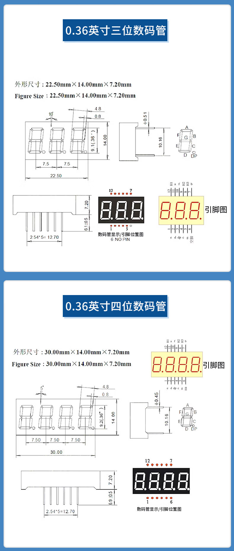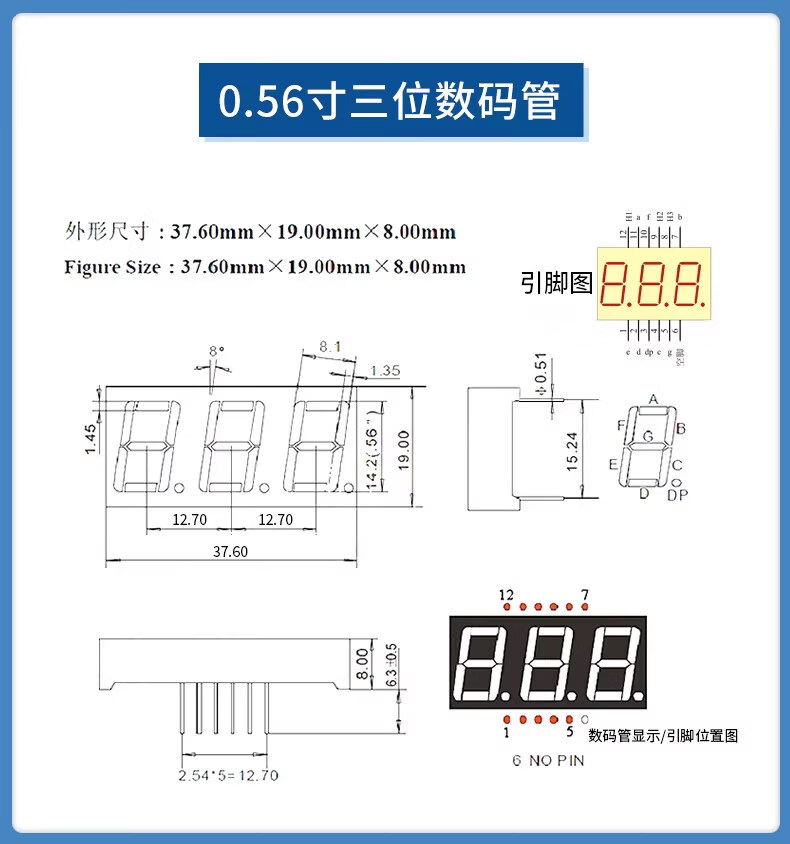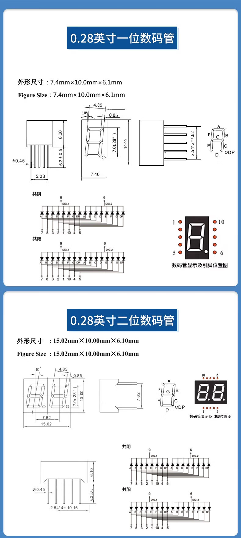 Digital tube 0.28/0.36/0.4/0.56/0.8 inches displays 2/3/4/6 digits in one, common Yin/Yang red, 0.28 inches, common Yin, 3 digits (2 pieces)