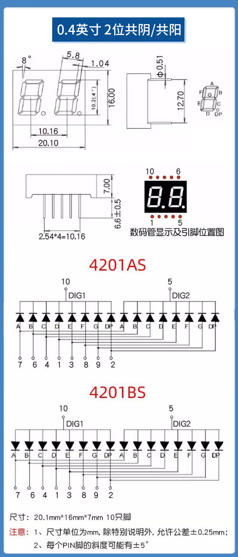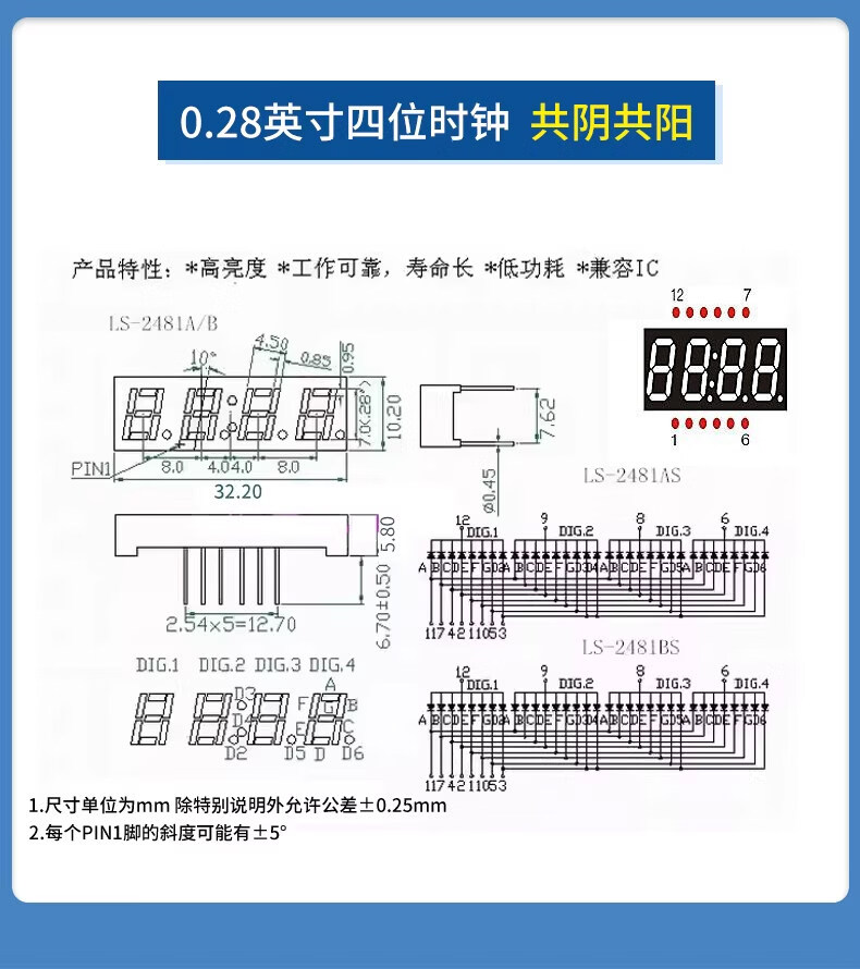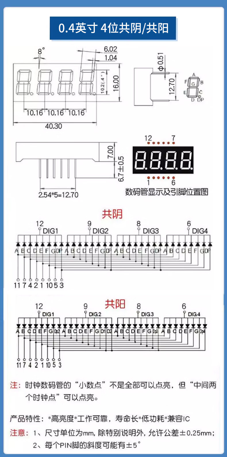 Digital tube 0.28/0.36/0.4/0.56/0.8 inches displays 2/3/4/6 digits in one, common Yin/Yang red, 0.28 inches, common Yin, 3 digits (2 pieces)