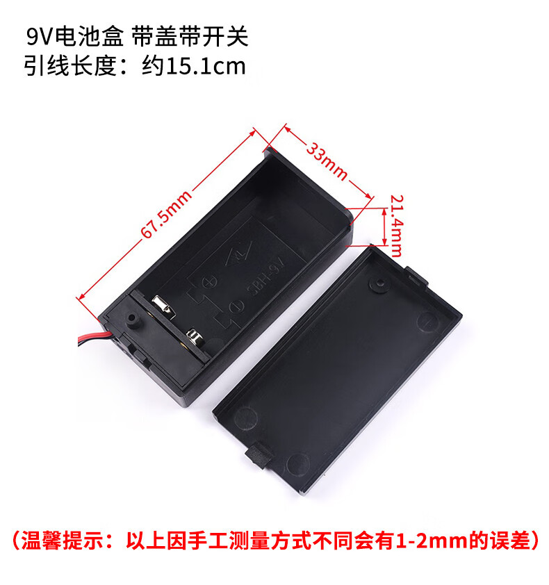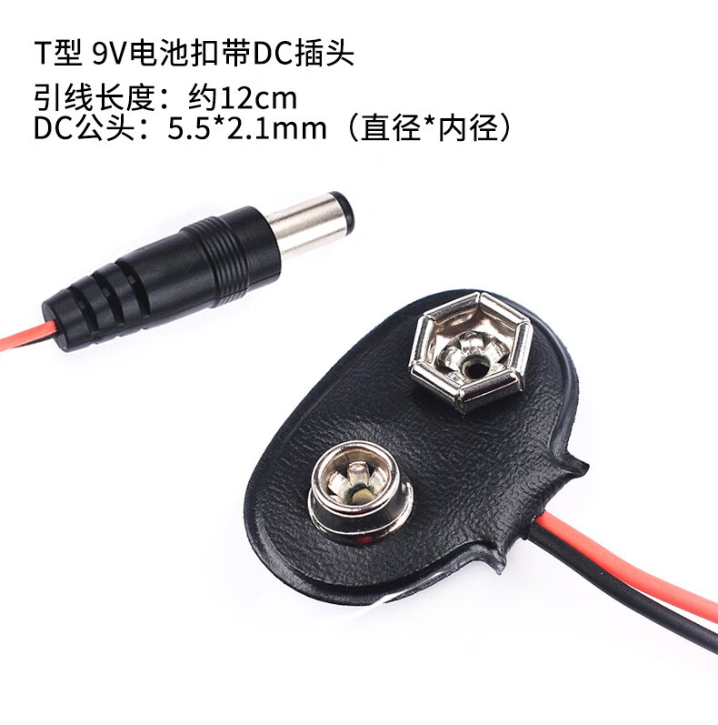 9V12v battery buckle battery box T/I type 9V with cover and switch with 5.5*2.1 plug 6F22 square seat T type 9V battery buckle (5 pieces)
