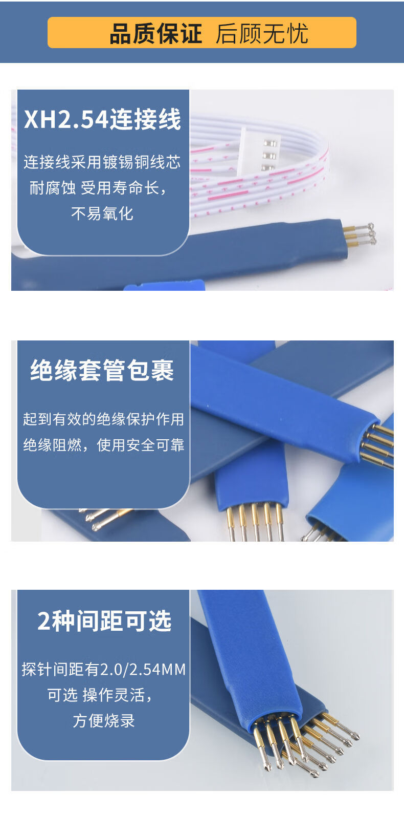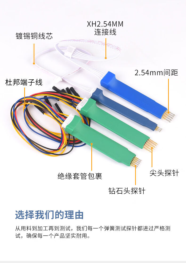 2.54mm 2.0mm program burning test pin spring pin probe STC STM32 ARM microcontroller programming 2.0 pitch 4p pointed probe with DuPont terminal line