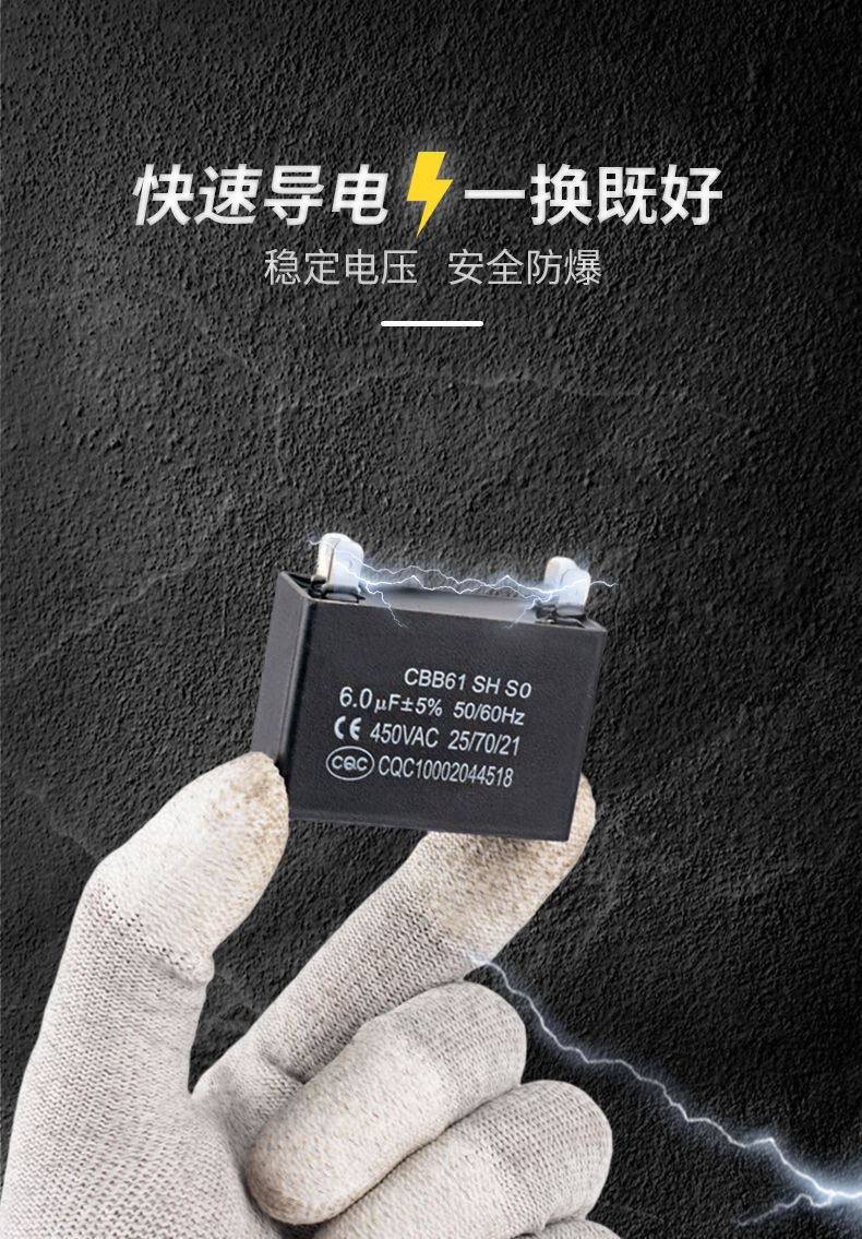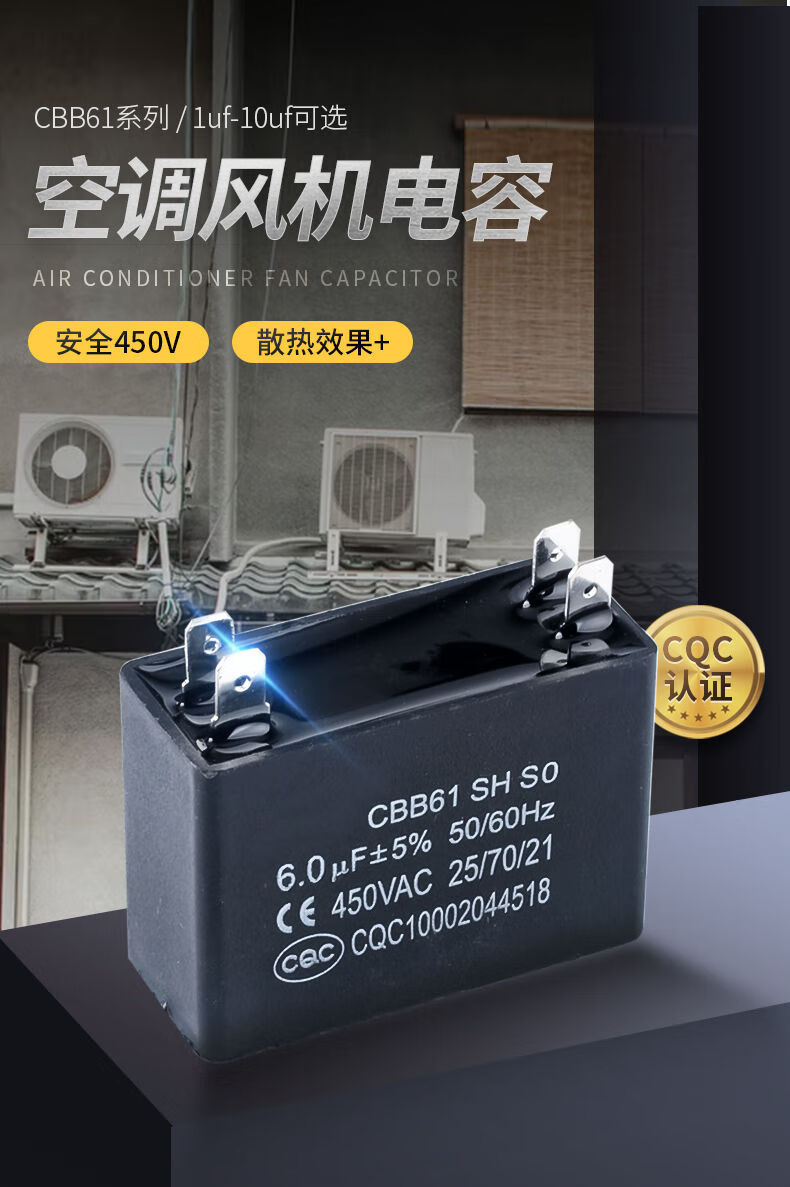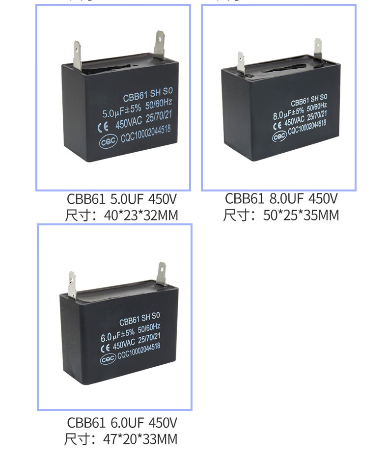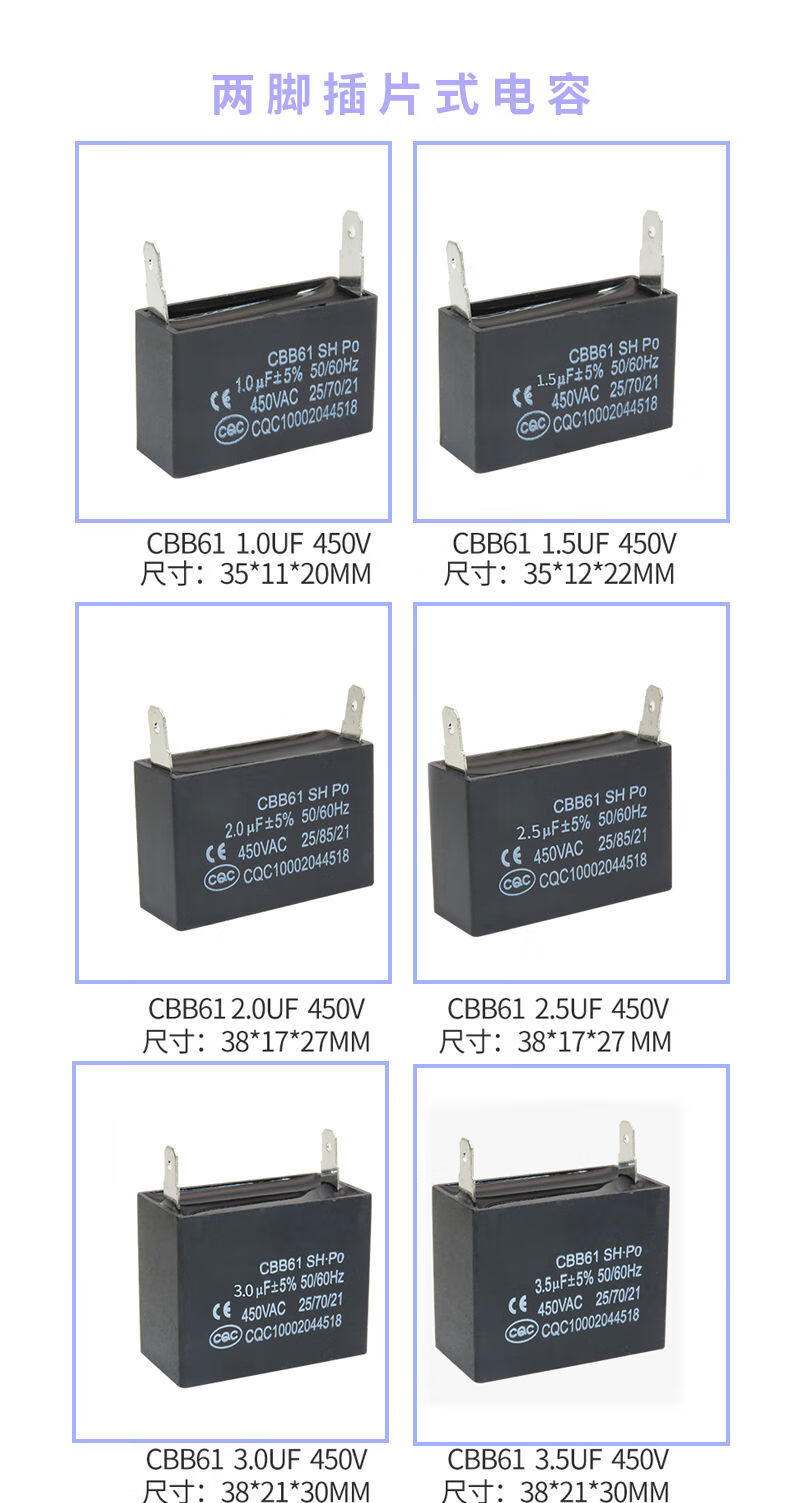 CBB61 air conditioning fan capacitor 1/1.5/2/2.5/3/3.5/4/4.5/5/6/8UF starting capacitor 450V CBB61 two-pin insert 5.0UF