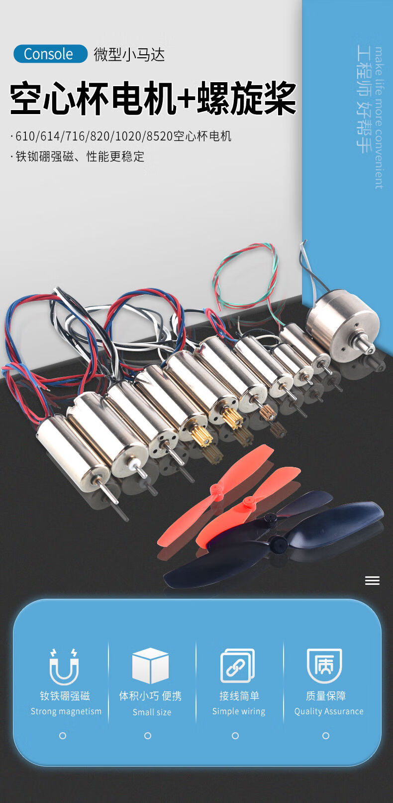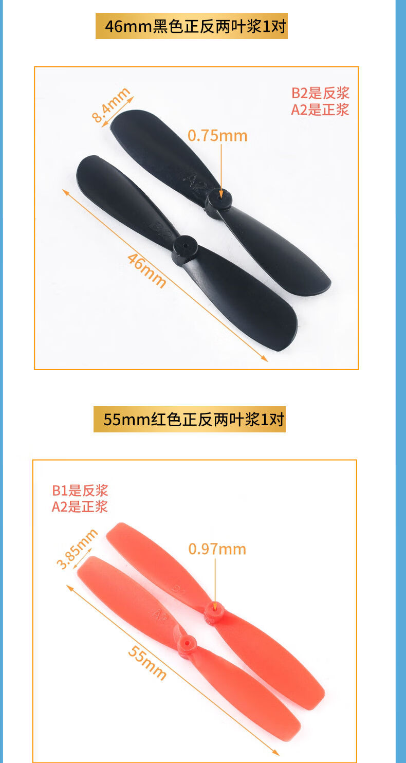 716 hollow cup 720 quadcopter 8520 drone high-speed motor motor micro small motor propeller 55mm red positive and negative two-blade propeller 1 pair