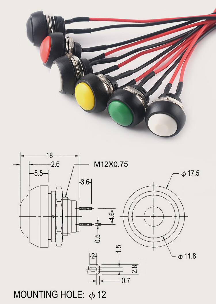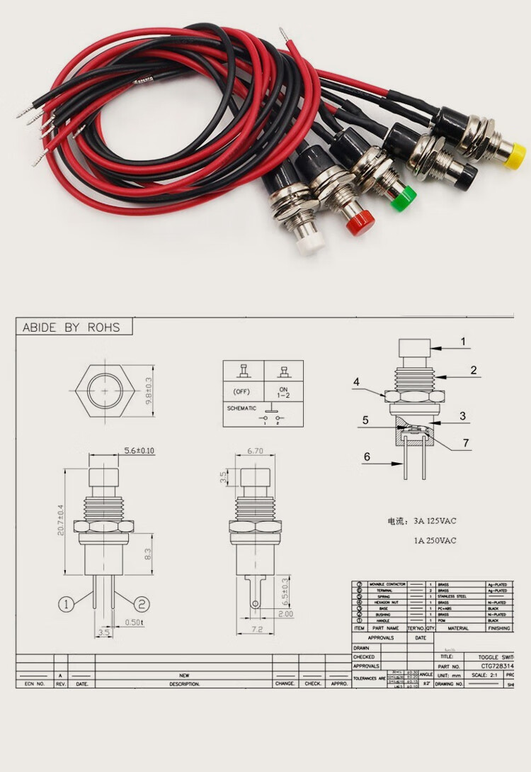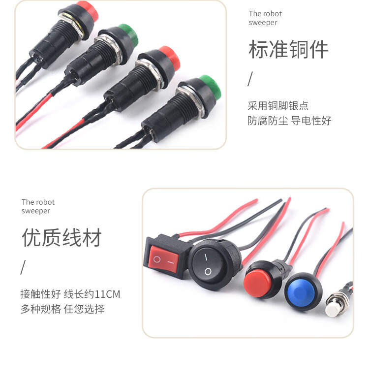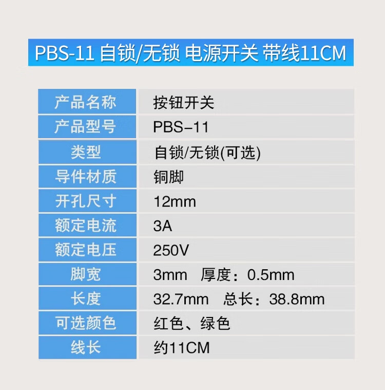 PBS-11A/B 110 with wire switch 33B small boat-shaped round button low voltage circuit wire speaker appliance PBS-11B without lock green with wire