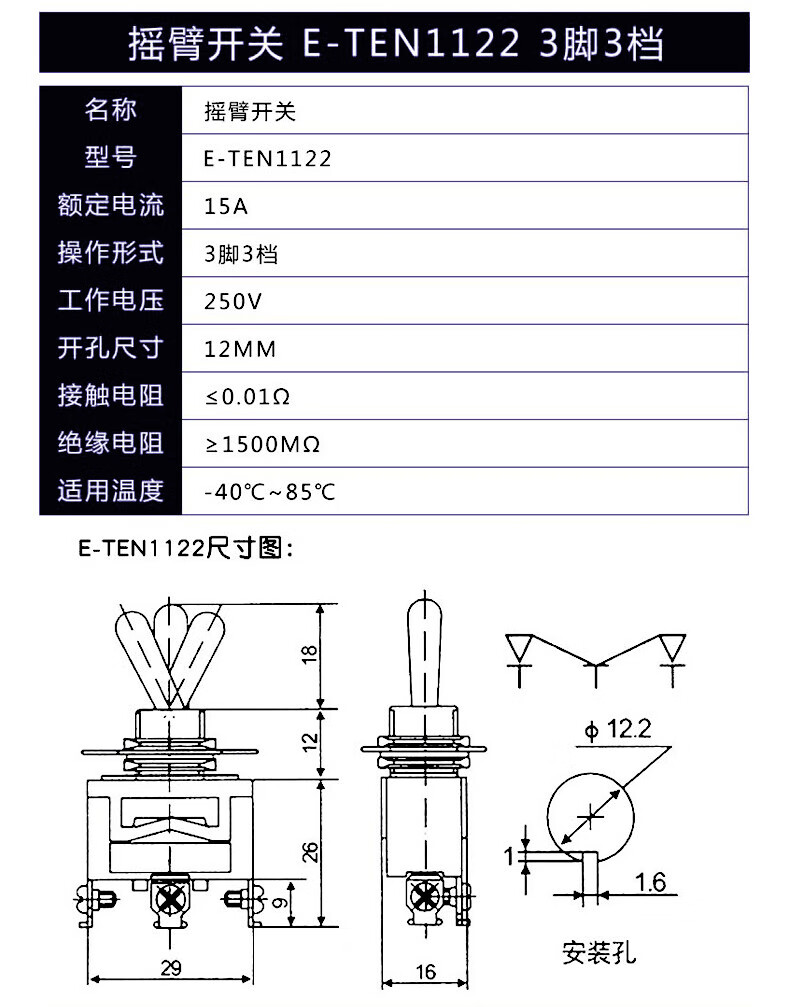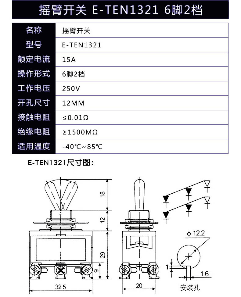 Toggle switch, twist button, rocker arm, toggle MTS-102 202 E-TEN102 2nd gear, 3rd gear E-TEN1121 3 feet, 2nd gear