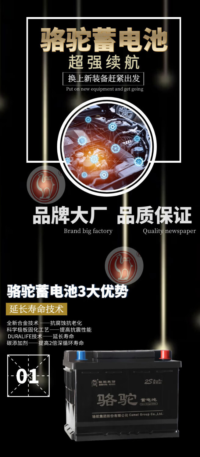 Camel battery 54565 is suitable for Baojun 310/360/510 BAIC EU5 BYD Qin/F0 car battery 45AH. Old battery needs to be recycled. 54565