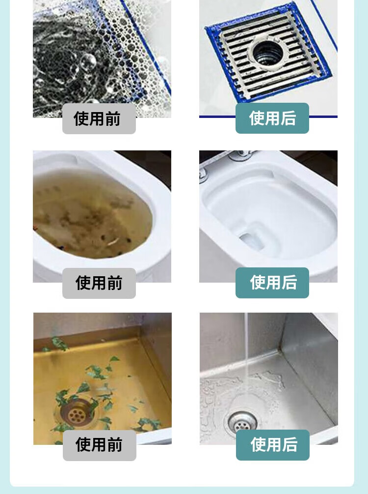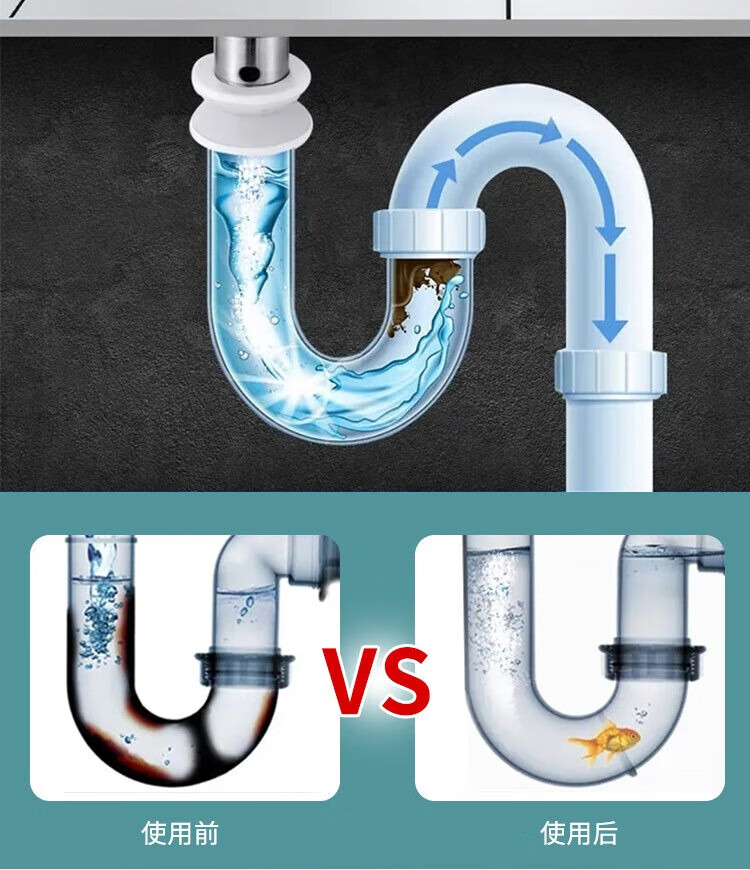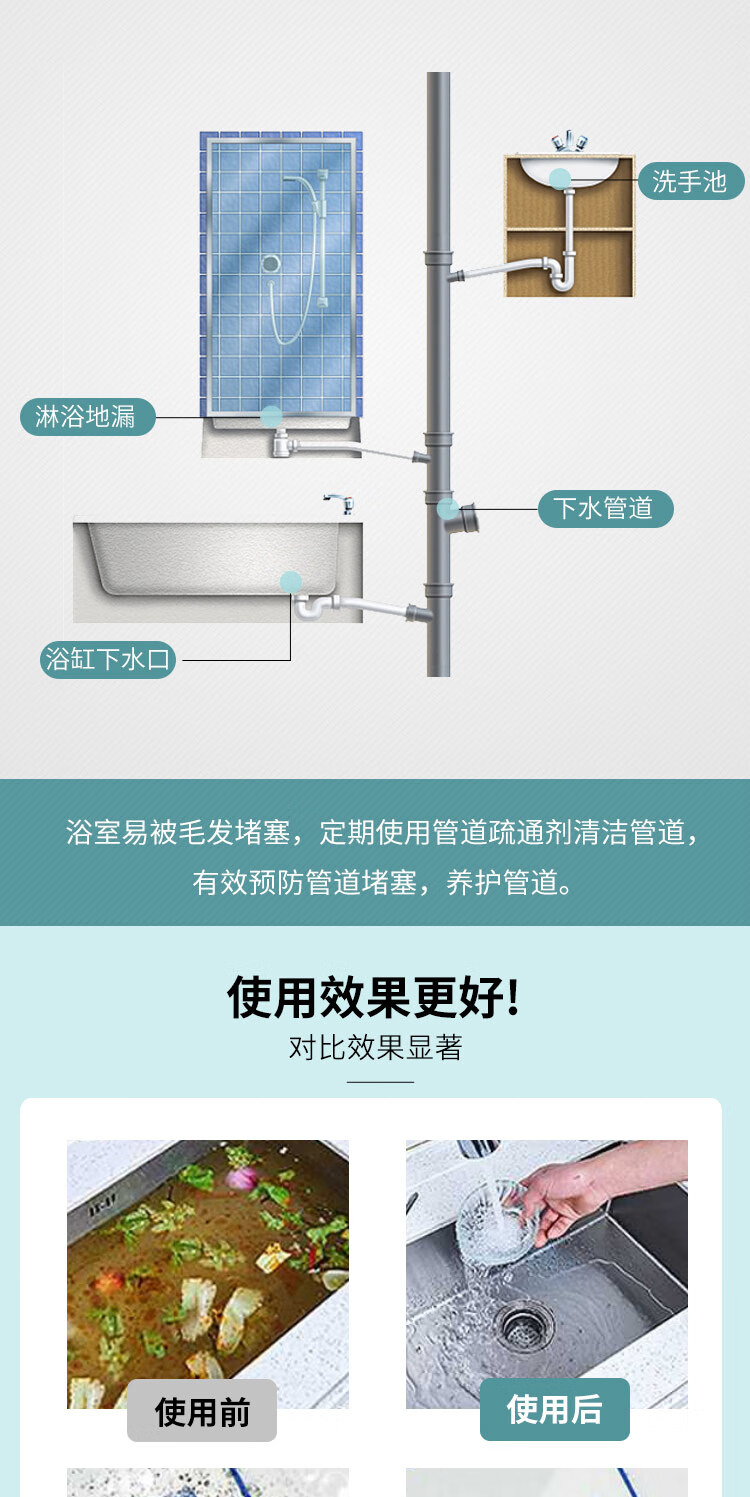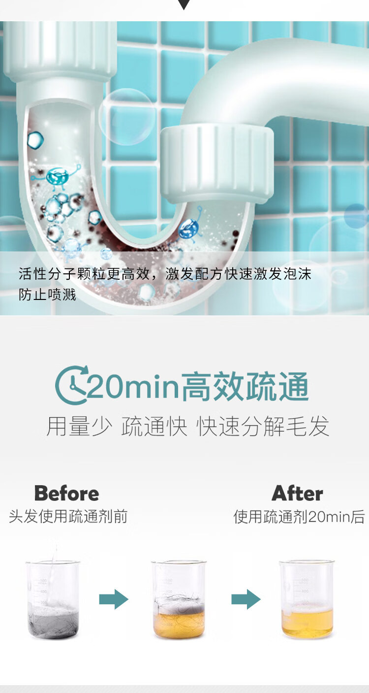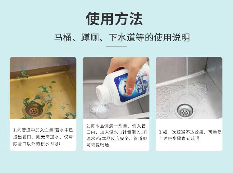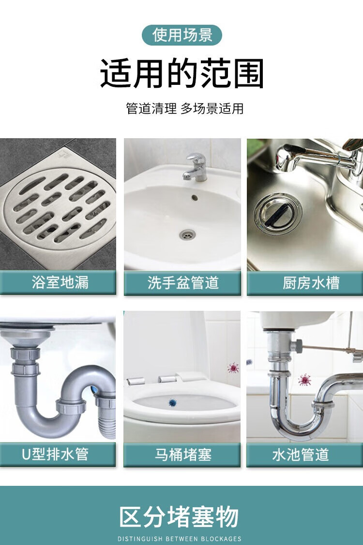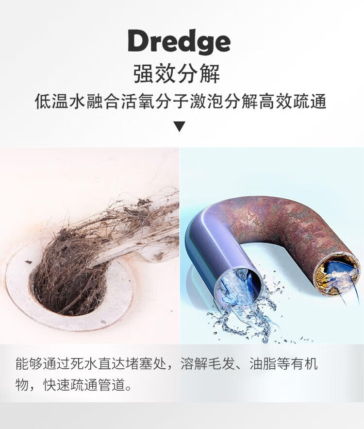 Clean and bright pipe unblocking agent for sewer unblocking, kitchen, bathroom floor drain, toilet hair blockage deodorization, powerful unblocking and dissolving artifact, wash basin food waste unblocking 2 bottles