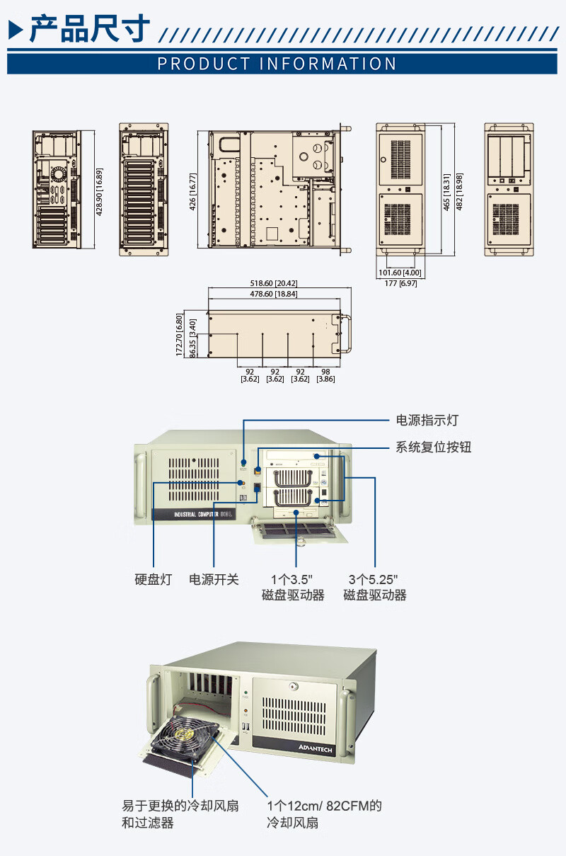 Yanhui Yanhua Technology Advantech Industrial Computer 510 Original Genuine IPC-610L Industrial Computer Host Industrial Computer Serial Port Supports XP Automation Equipment Visual Inspection 4U Chassis IPC-610L-GF81 (4th Generation) (HDMI) I5-4570/8G/512GSSD/Keyboard and Mouse