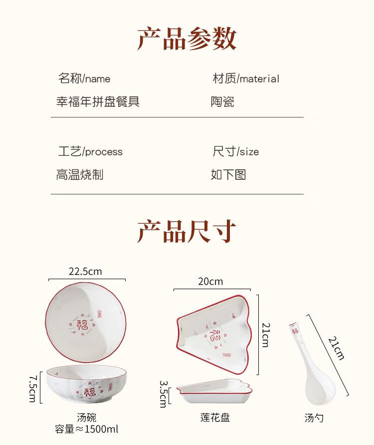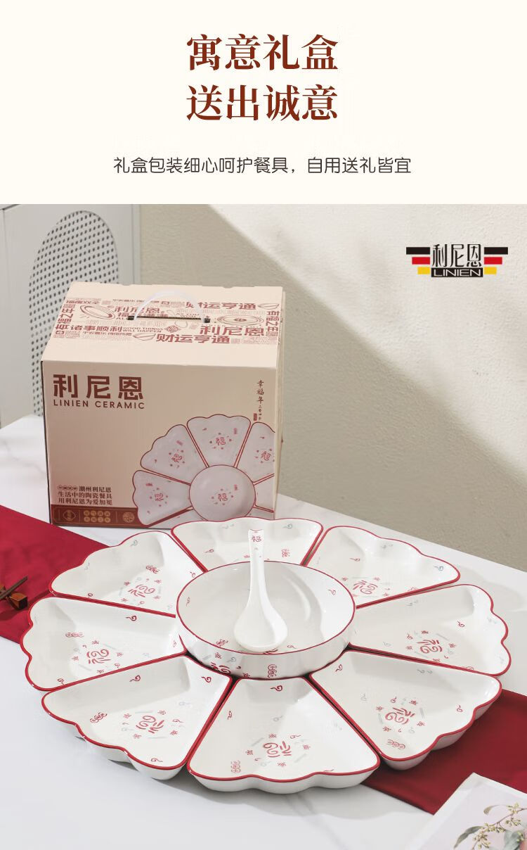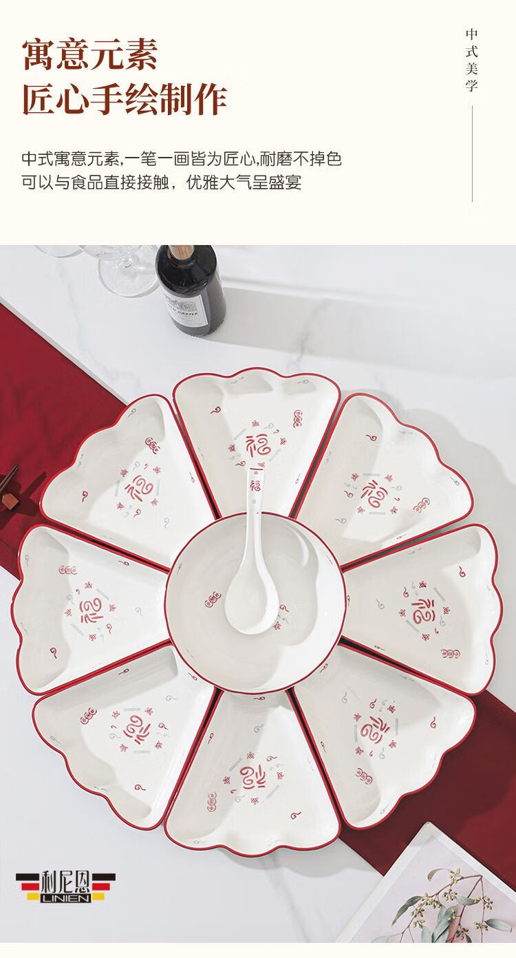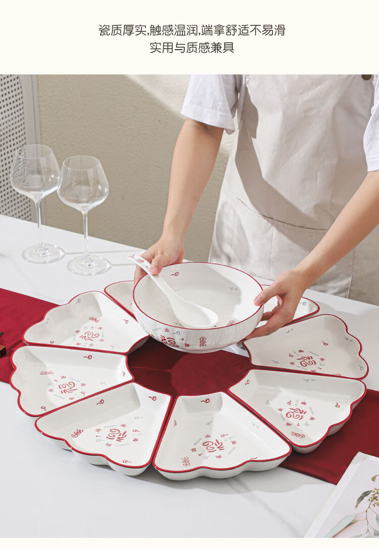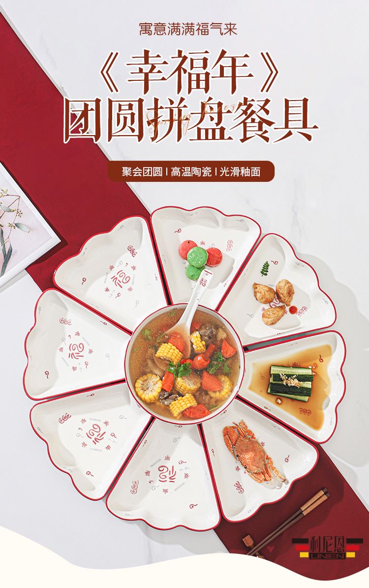 Ceramic Platter Reunion Dishes Dinner Set Tableware Internet Celebrity Home Combination Creative Plate Round Table Dish Plate Happy Year Platter Gift Box Set