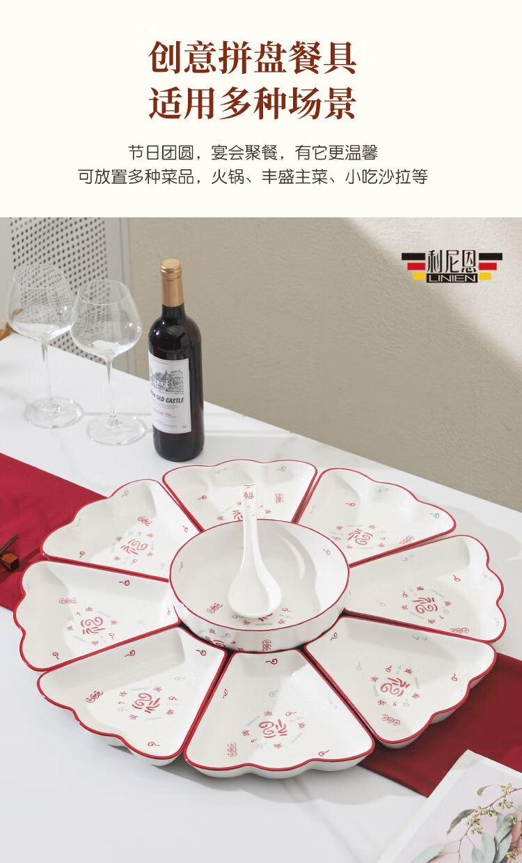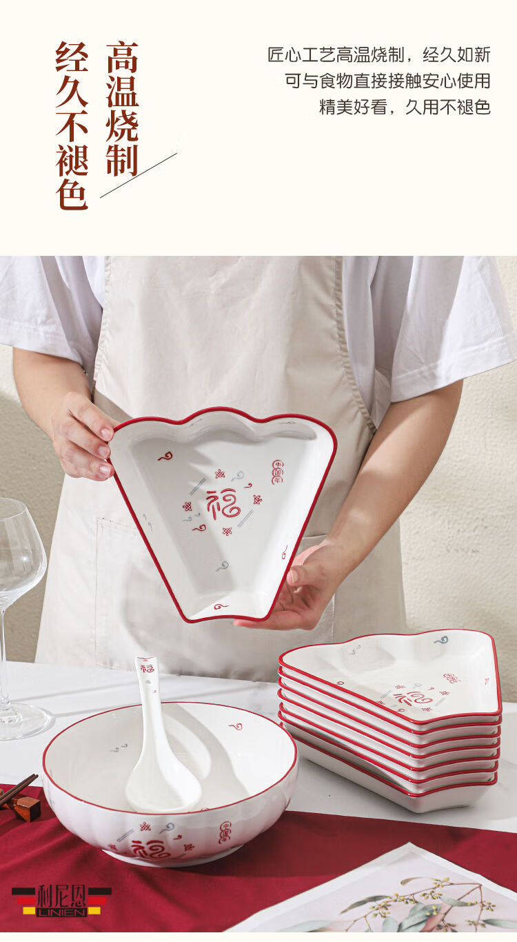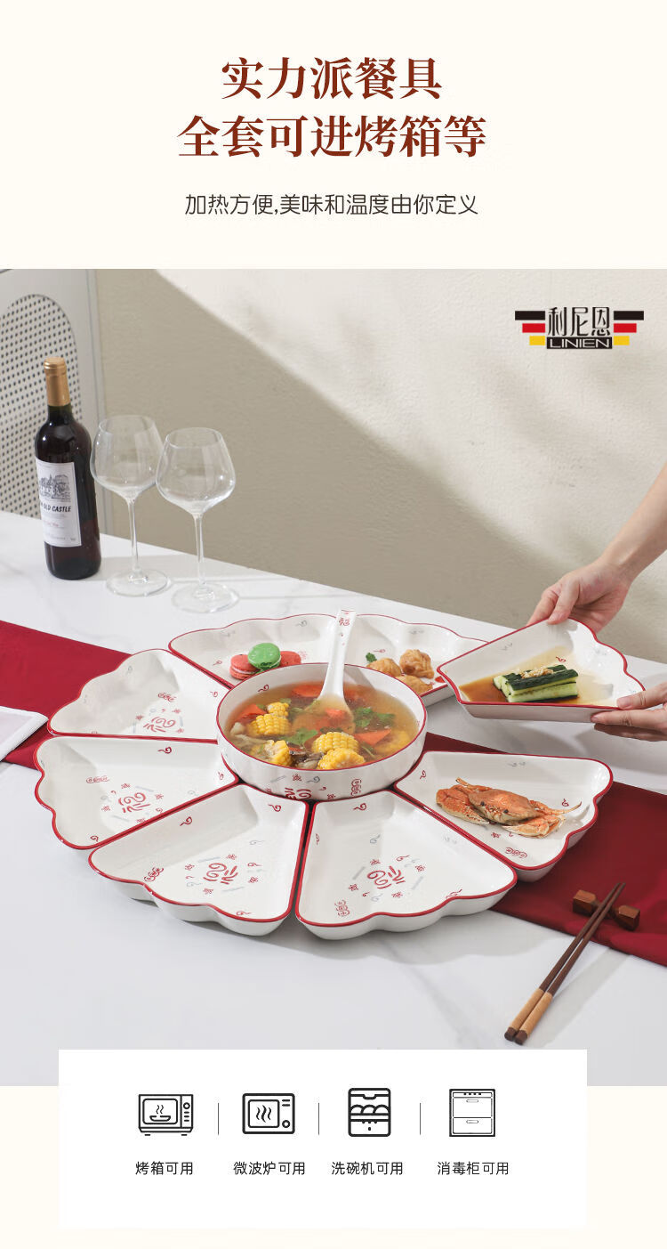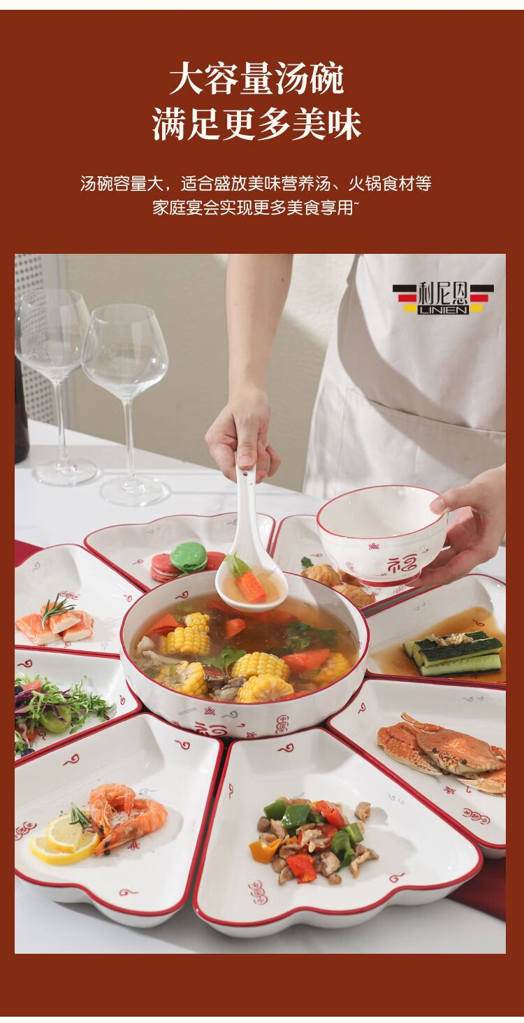 Ceramic Platter Reunion Dishes Dinner Set Tableware Internet Celebrity Home Combination Creative Plate Round Table Dish Plate Happy Year Platter Gift Box Set