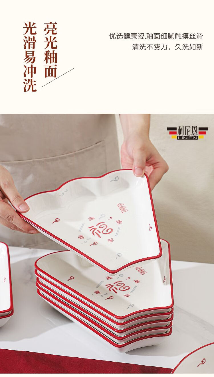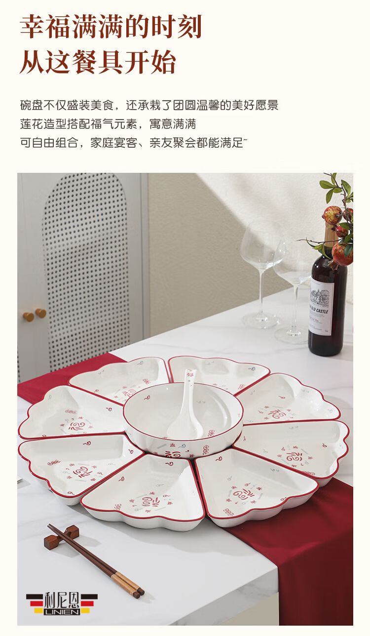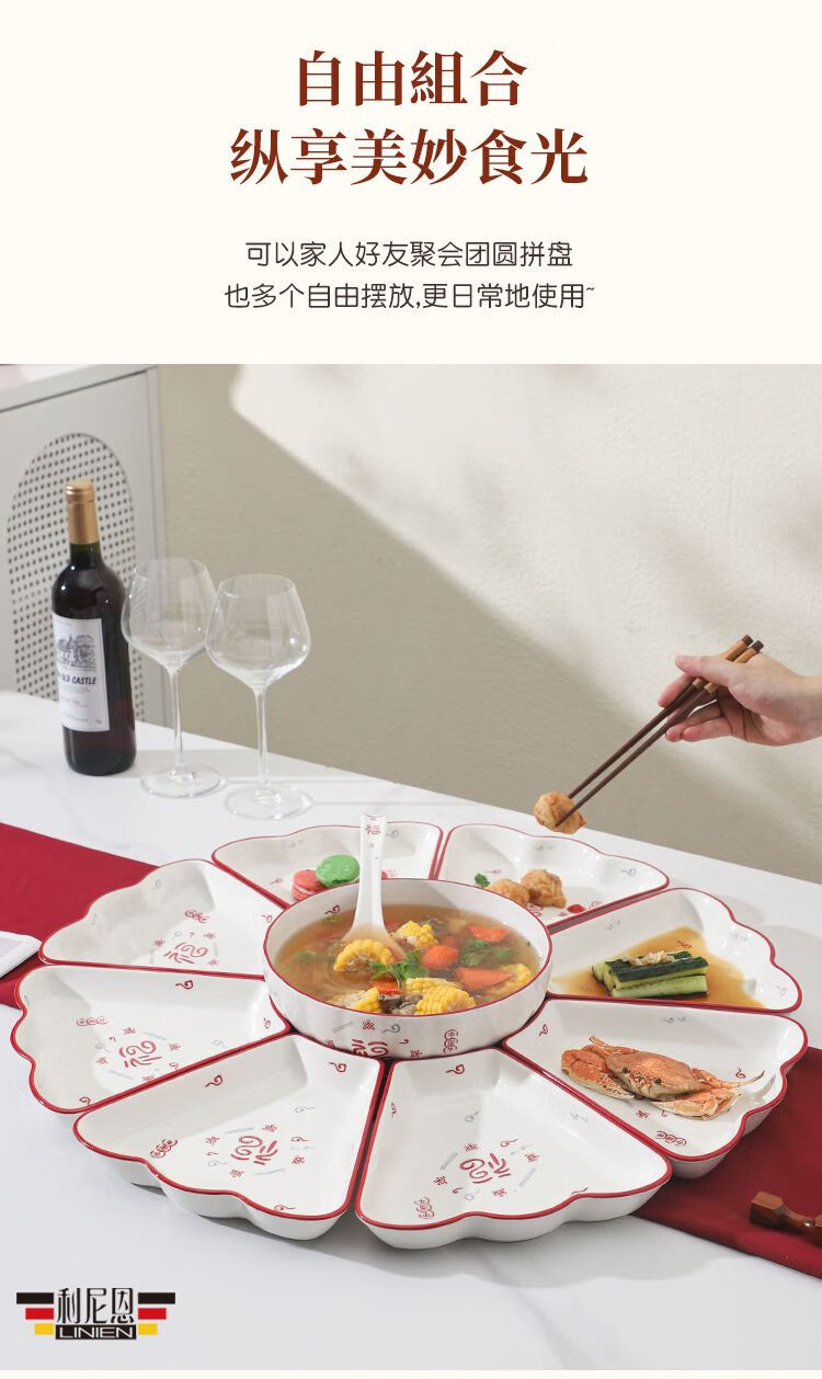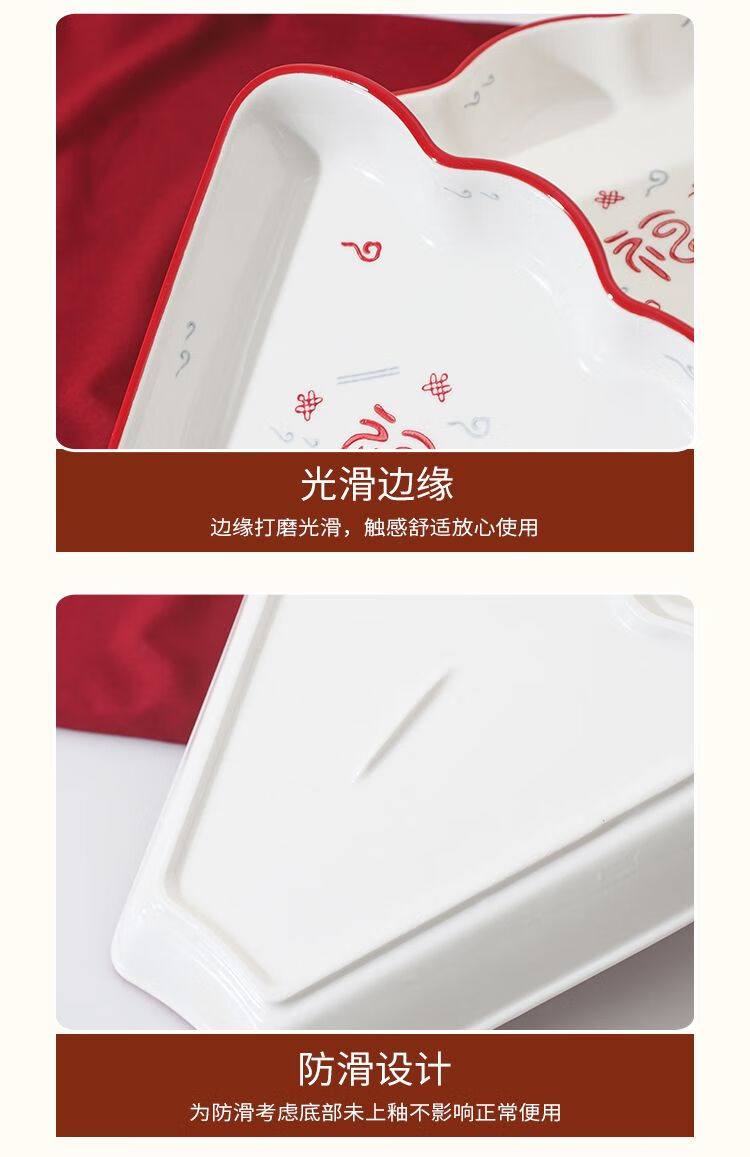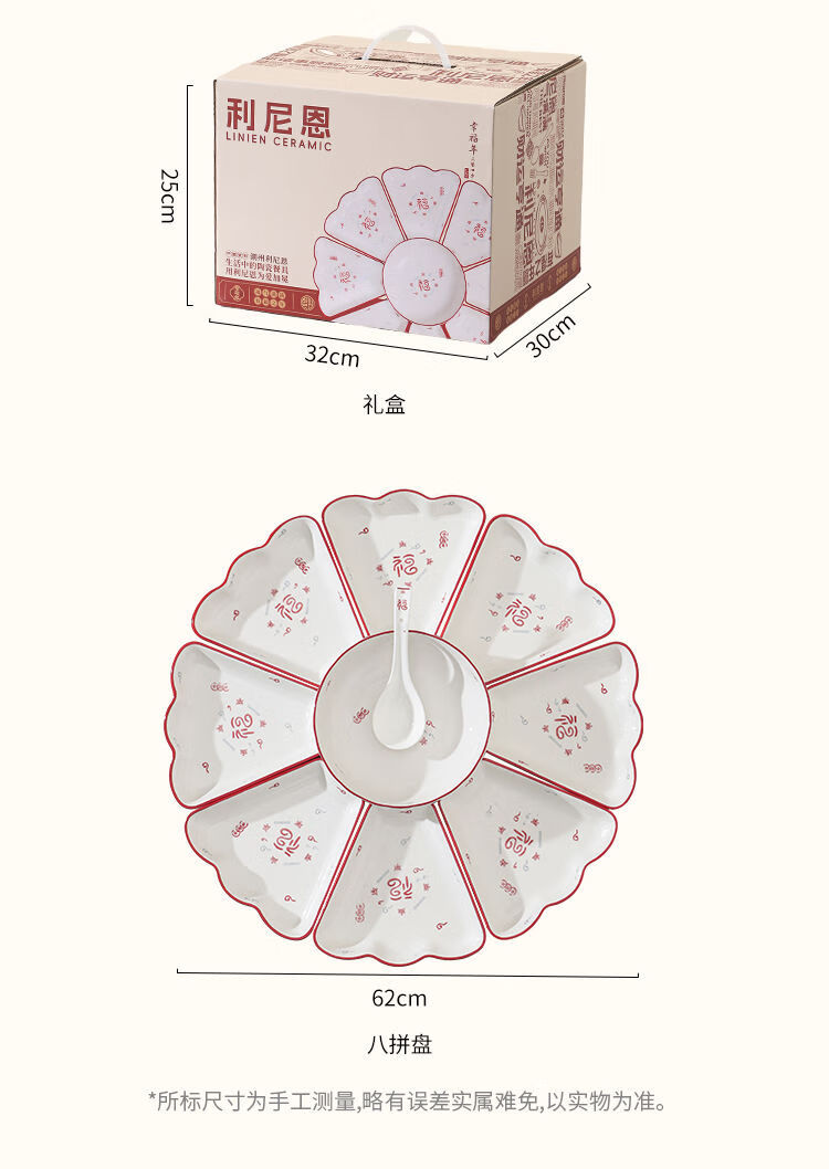 Ceramic Platter Reunion Dishes Dinner Set Tableware Internet Celebrity Home Combination Creative Plate Round Table Dish Plate Happy Year Platter Gift Box Set