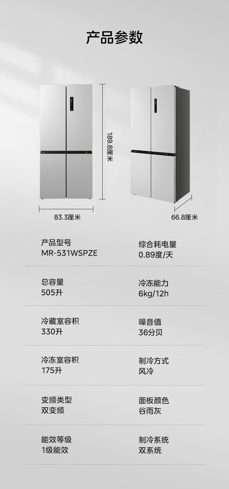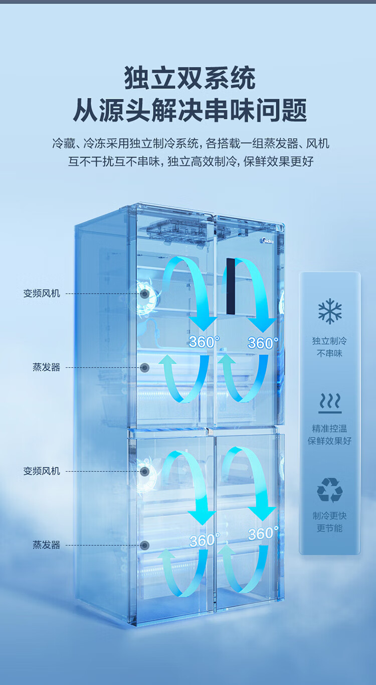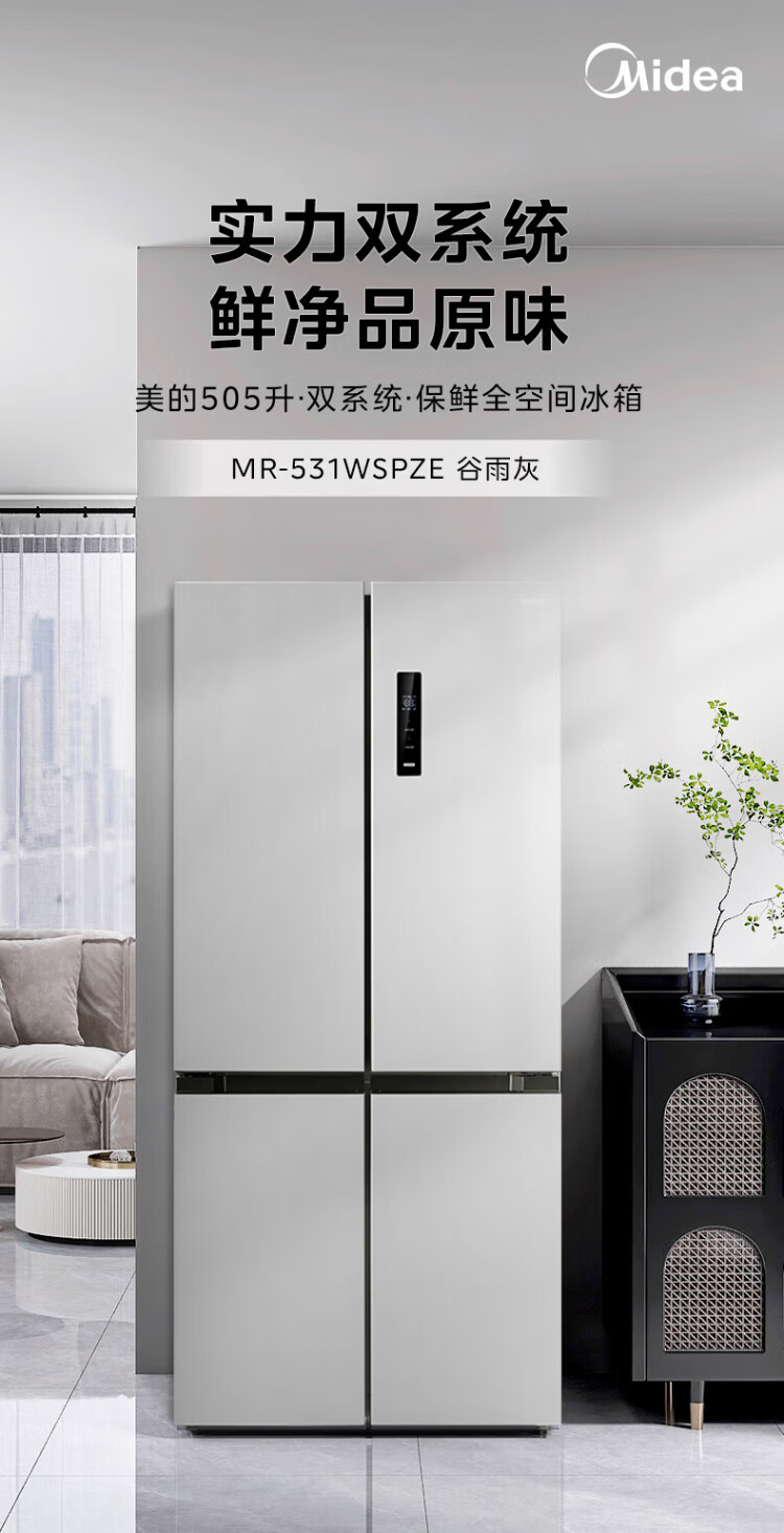 Midea dual-system dual-cycle frost-free double-opening cross four-door household refrigerator with variable frequency large capacity MR-531WSPZE immediate subsidy discount Guyu Hui