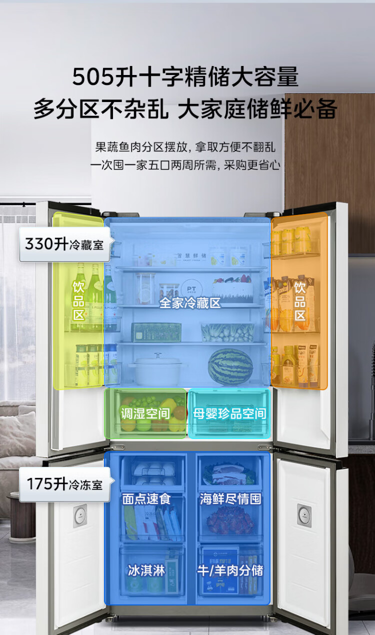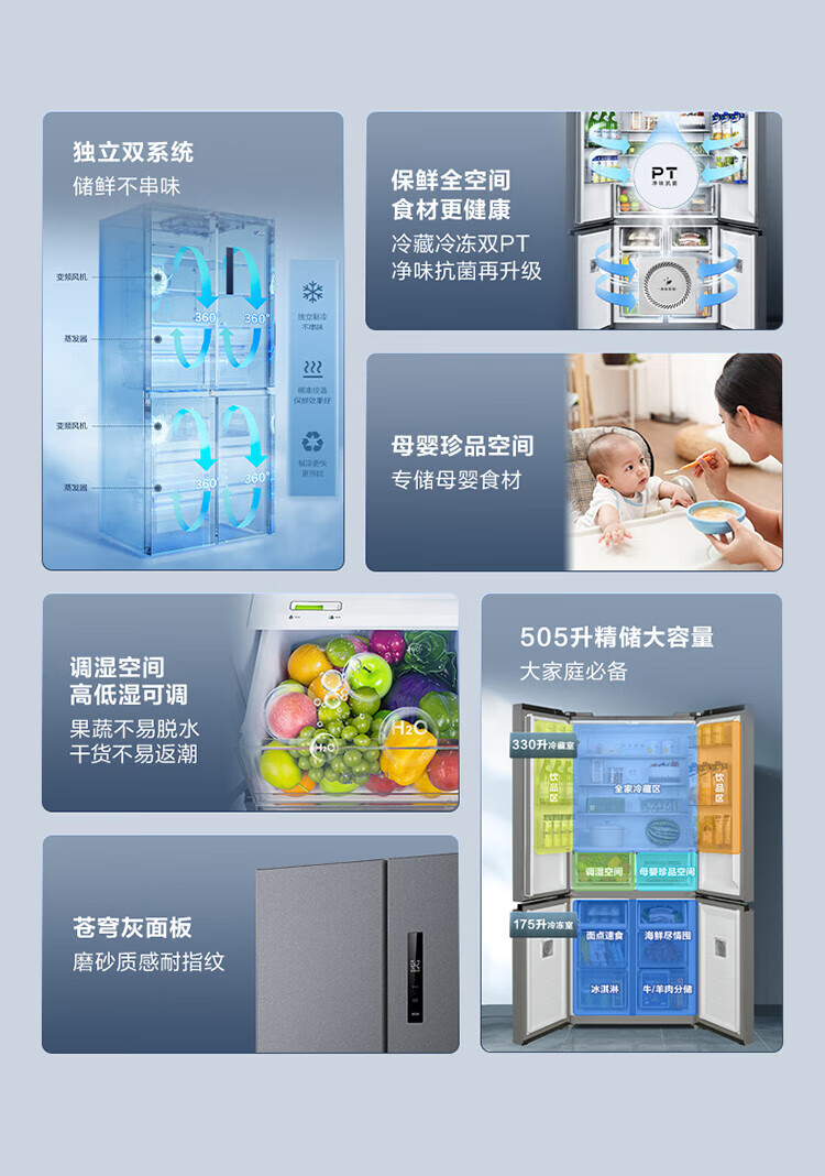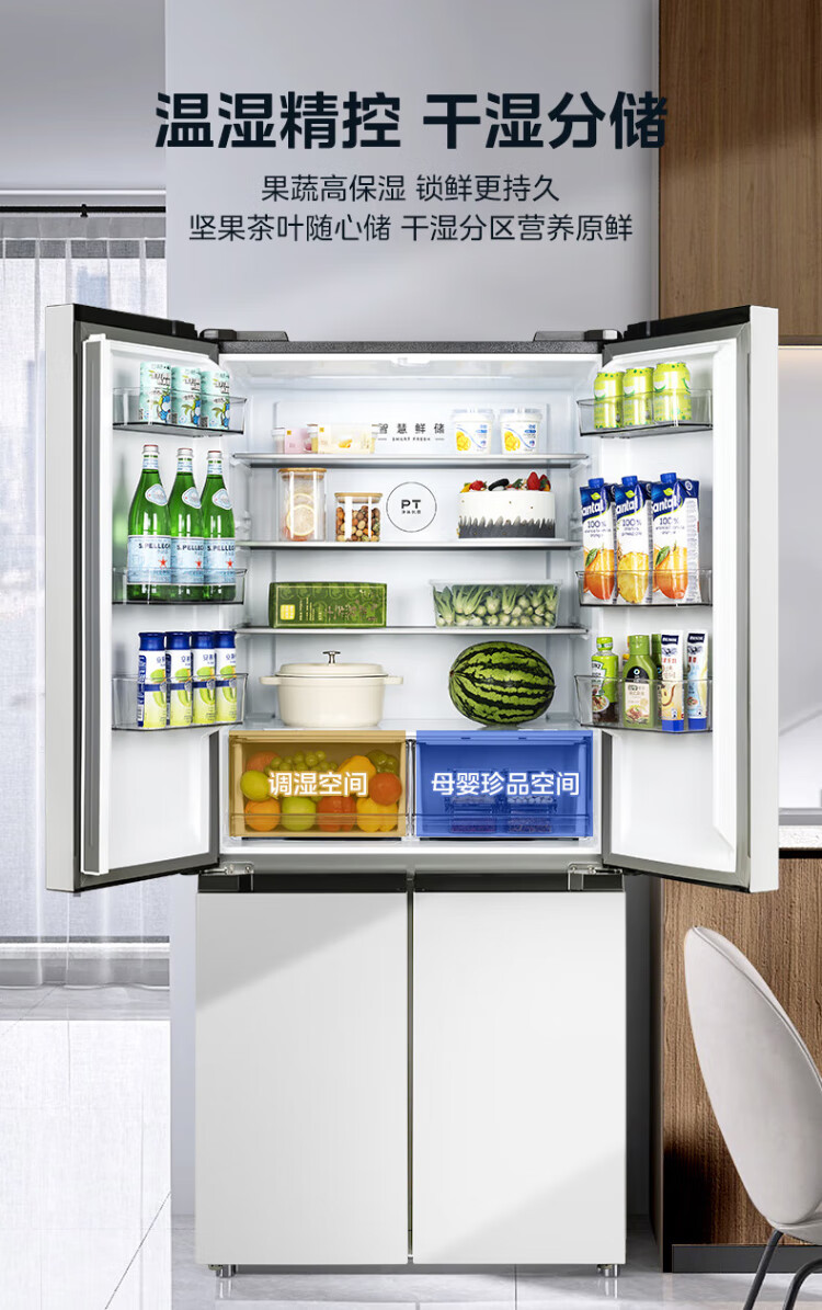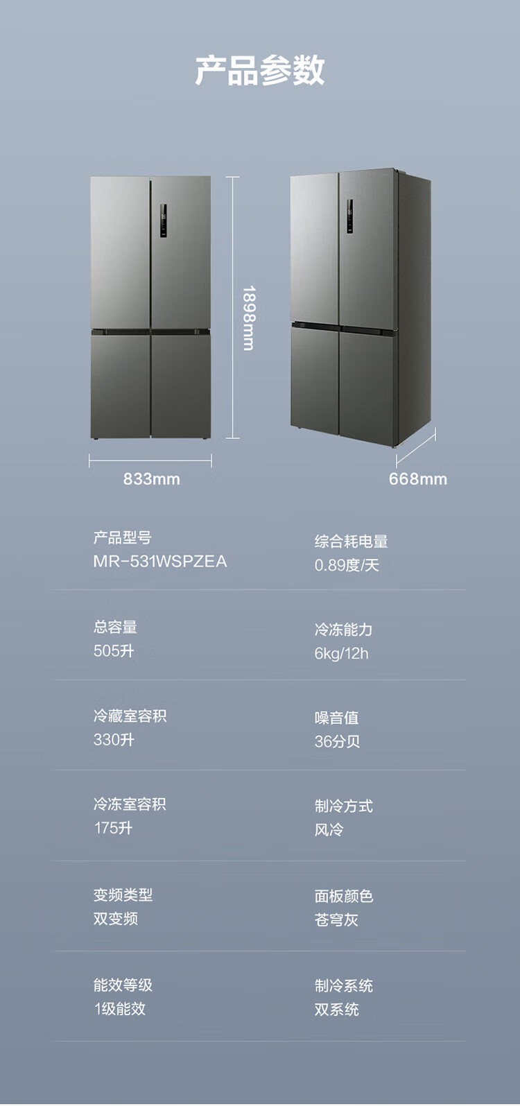 Midea dual-system dual-cycle frost-free double-opening cross four-door household refrigerator with variable frequency large capacity MR-531WSPZE immediate subsidy discount Guyu Hui