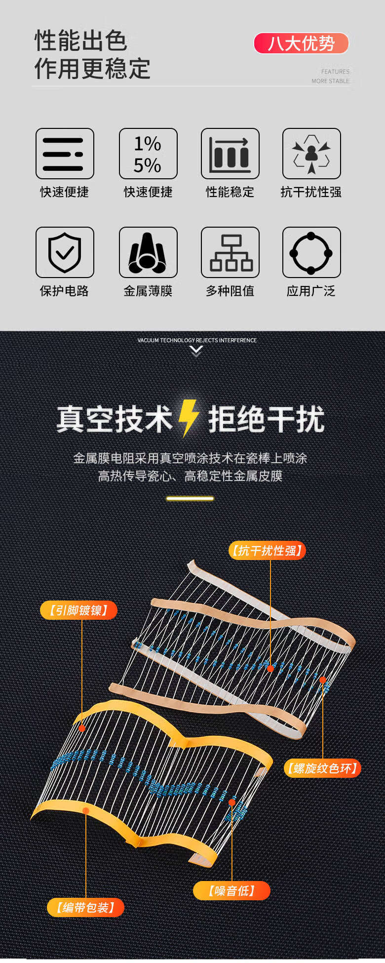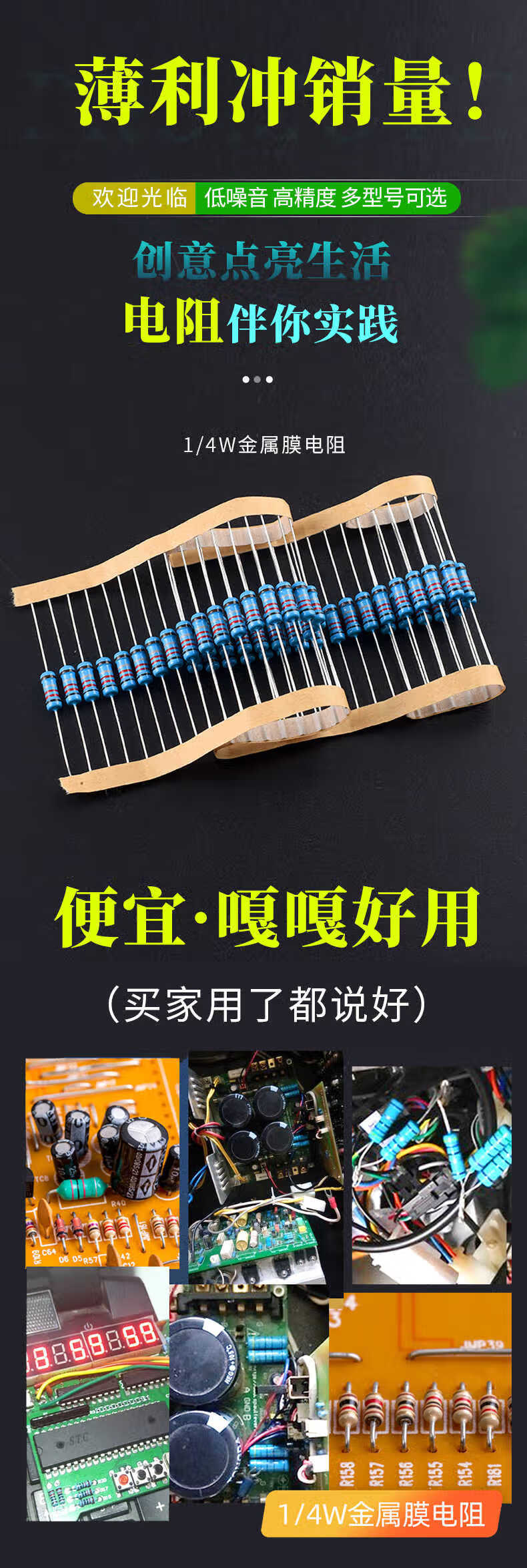 2W metal film resistor element 1% color ring 22 ohm 1K 10K 4.7K100K200K 1M2 ohm 120 ohm 47K2W (20 pieces)