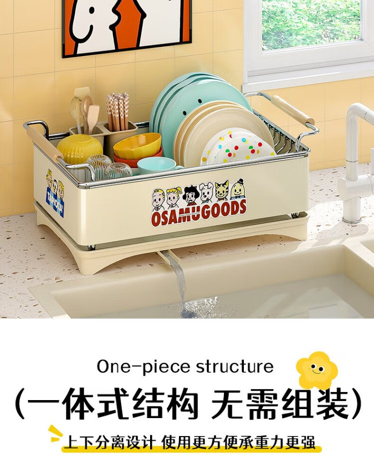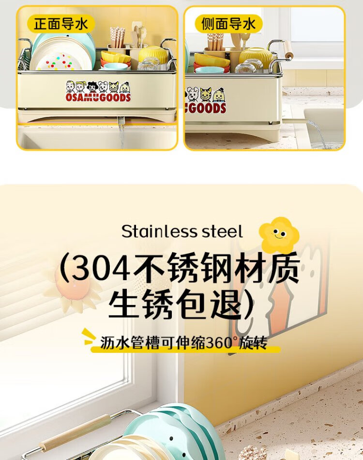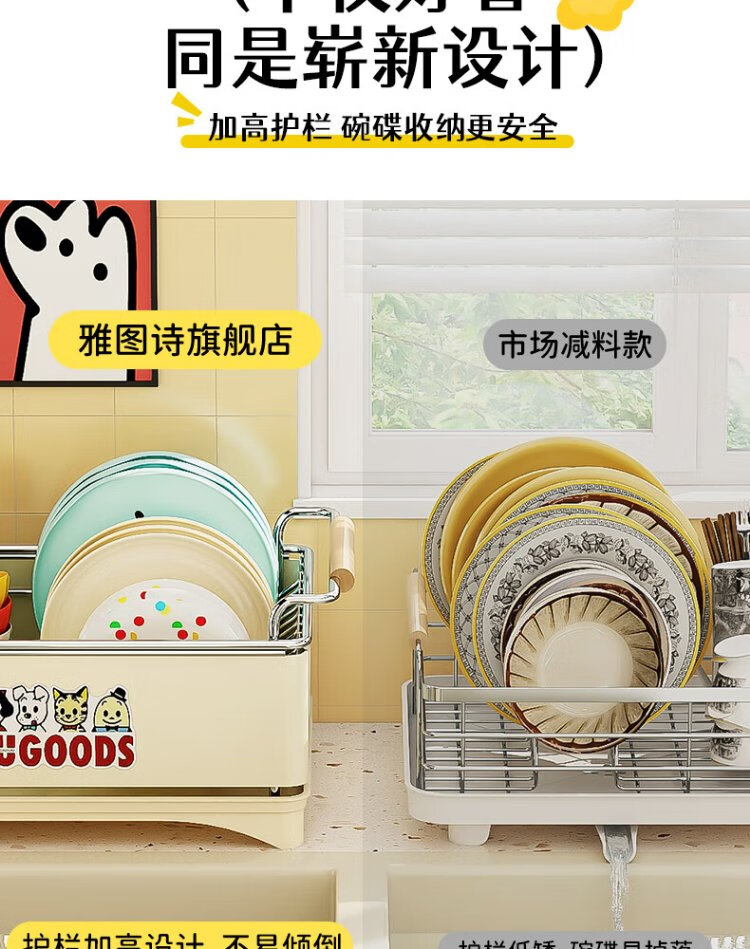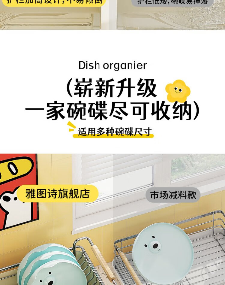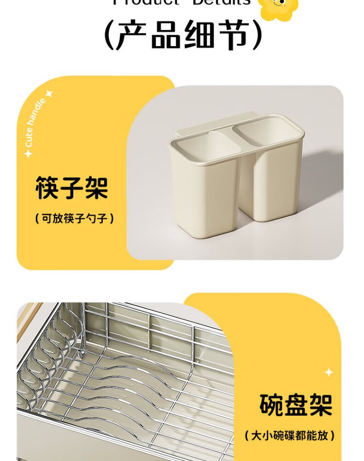 Yatushi 304 stainless steel dish rack kitchen dish storage dish drain rack tableware storage bowl and chopsticks household 304 stainless steel white + sticker chopstick barrel