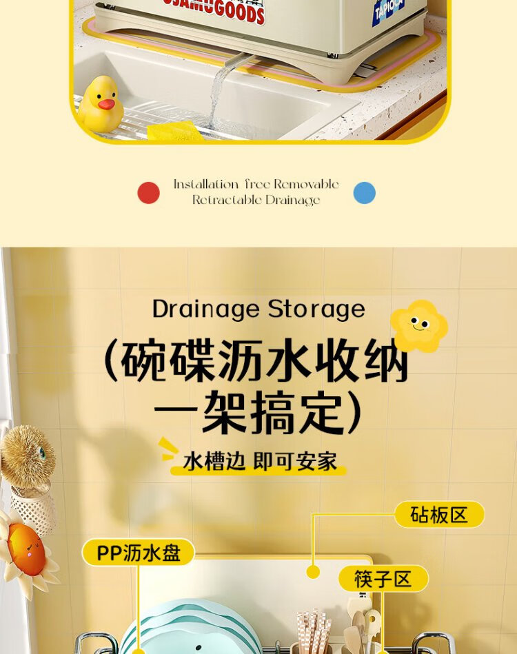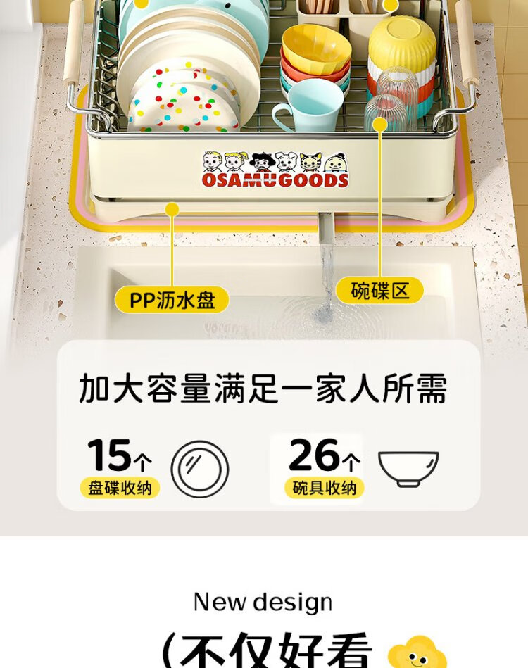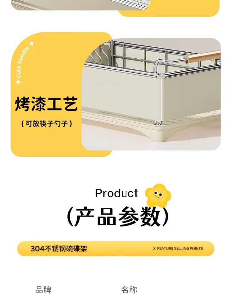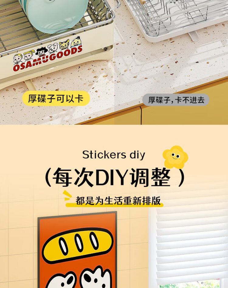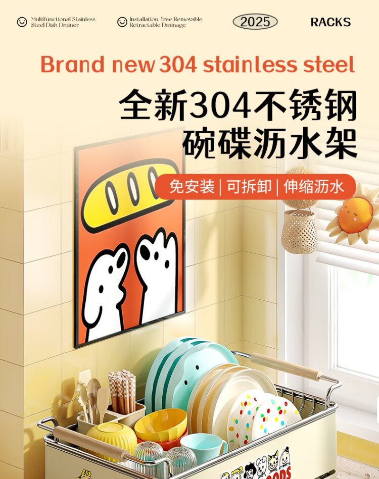 Yatushi 304 stainless steel dish rack kitchen dish storage dish drain rack tableware storage bowl and chopsticks household 304 stainless steel white + sticker chopstick barrel