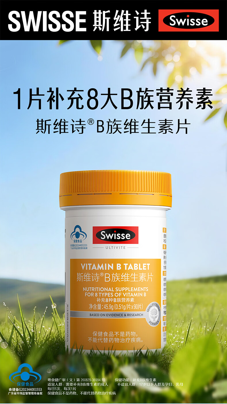 Swisse B vitamin tablets for adults and men supplement a variety of vitamin B complex containing vb nicotinamide 90 tablets * 1 bottle