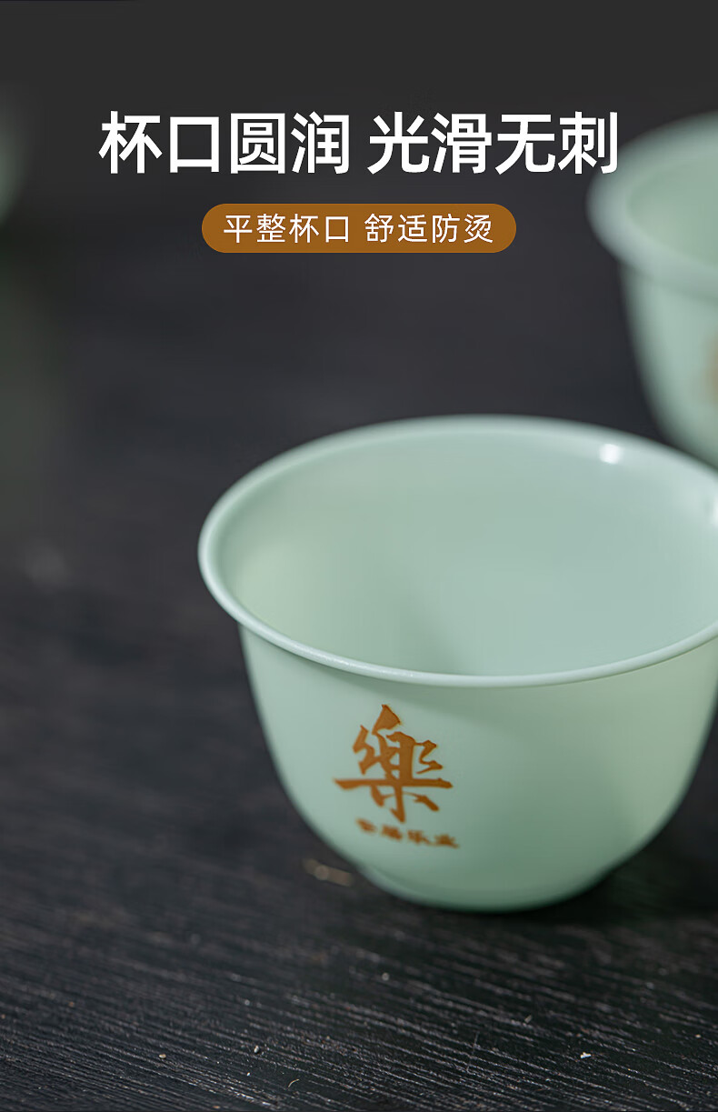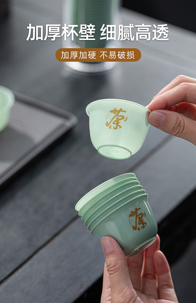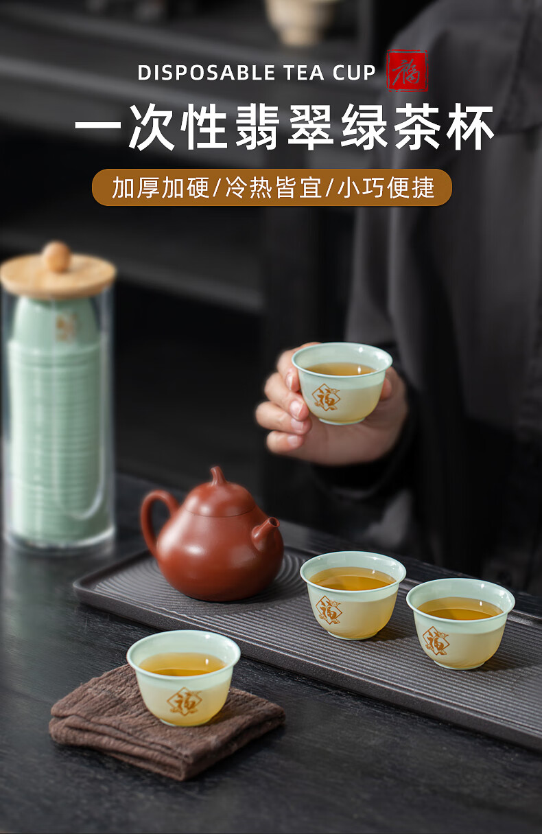 Trendy German quality disposable kung fu tea cup thickened food grade small cup for tea drinking in office, thickened 100 pieces, tea character + emerald green cup holder