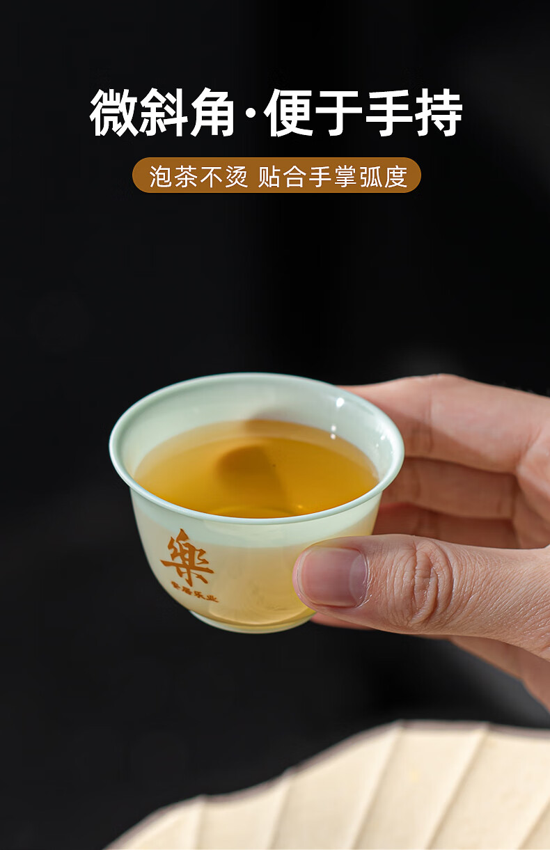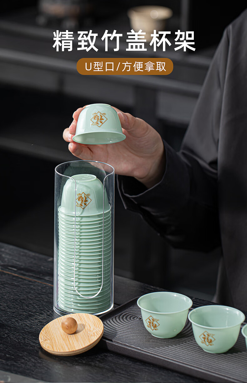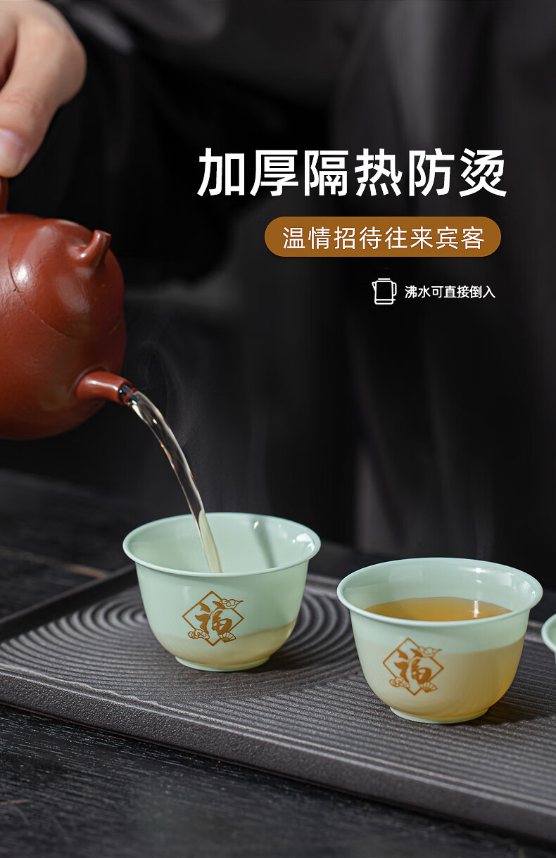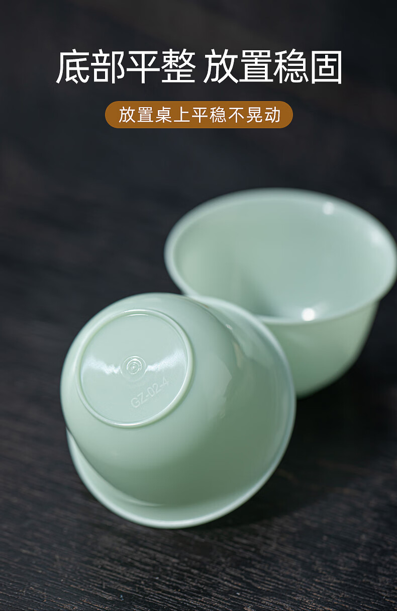 Trendy German quality disposable kung fu tea cup thickened food grade small cup for tea drinking in office, thickened 100 pieces, tea character + emerald green cup holder