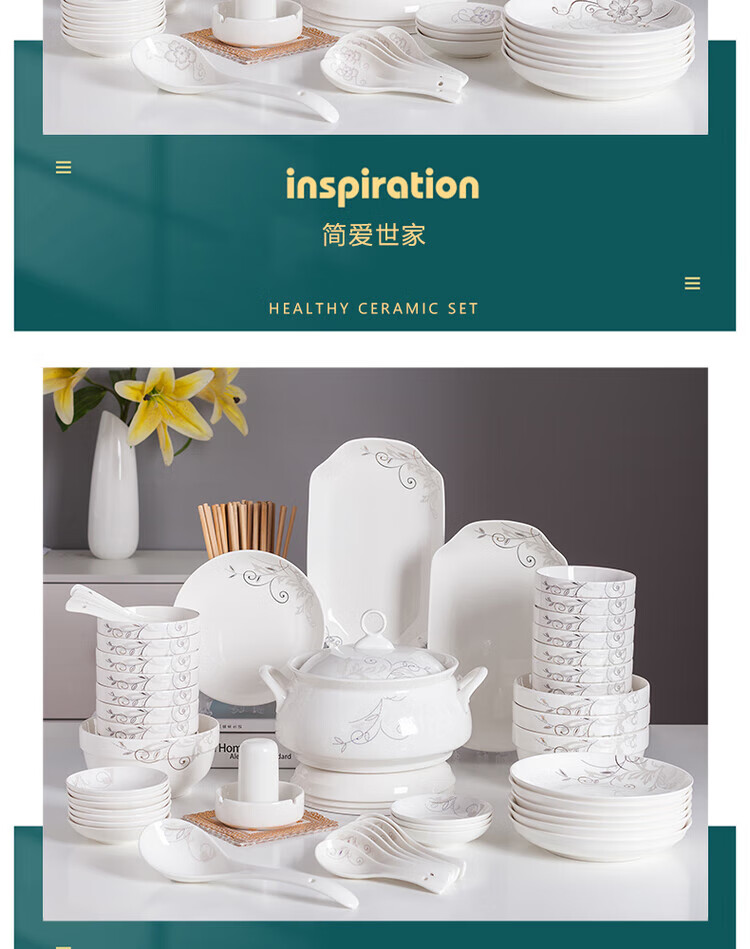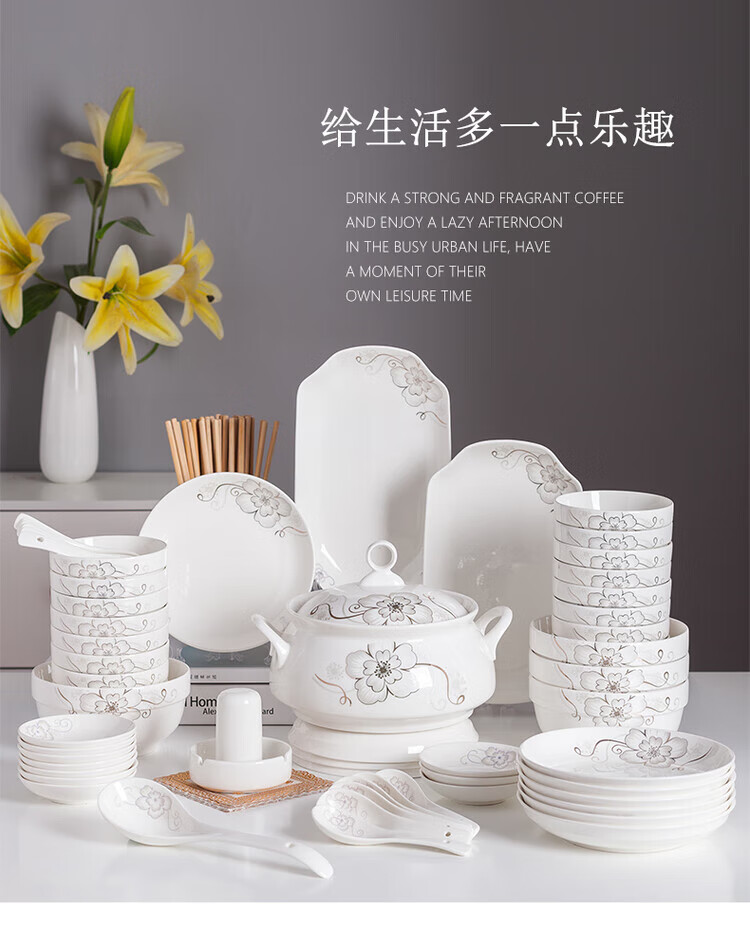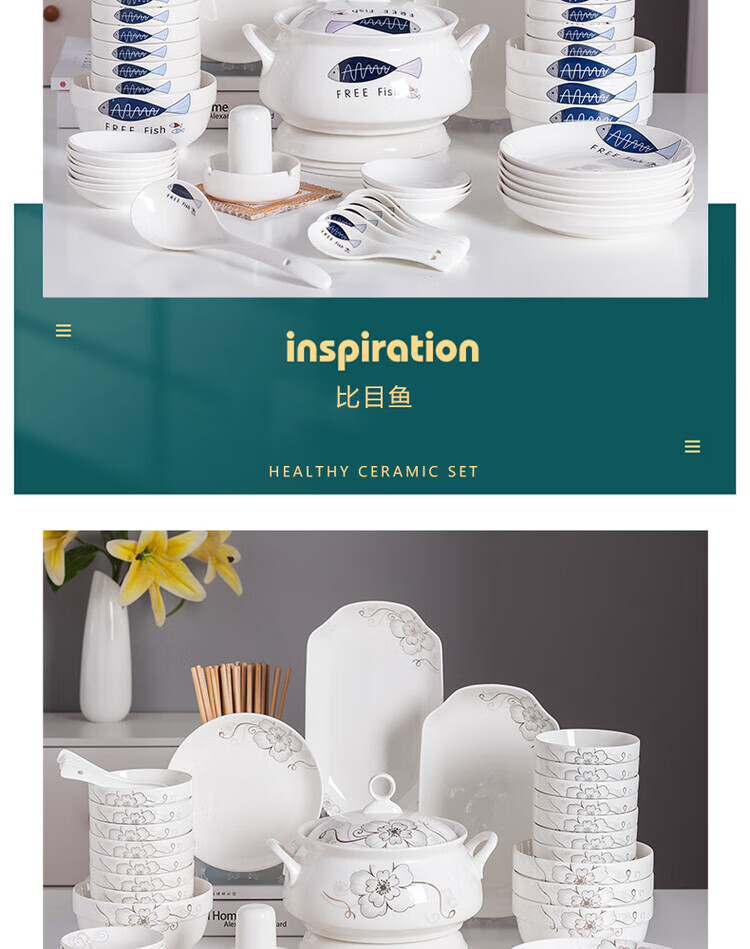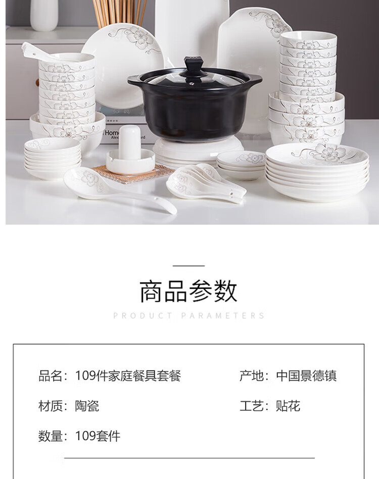 Jingdezhen (jdz) dish set 109 pieces household ceramic large soup bowl chopsticks rice noodle bowl and plate creative personalized light luxury tableware set 109 pieces golden branch with palace pot