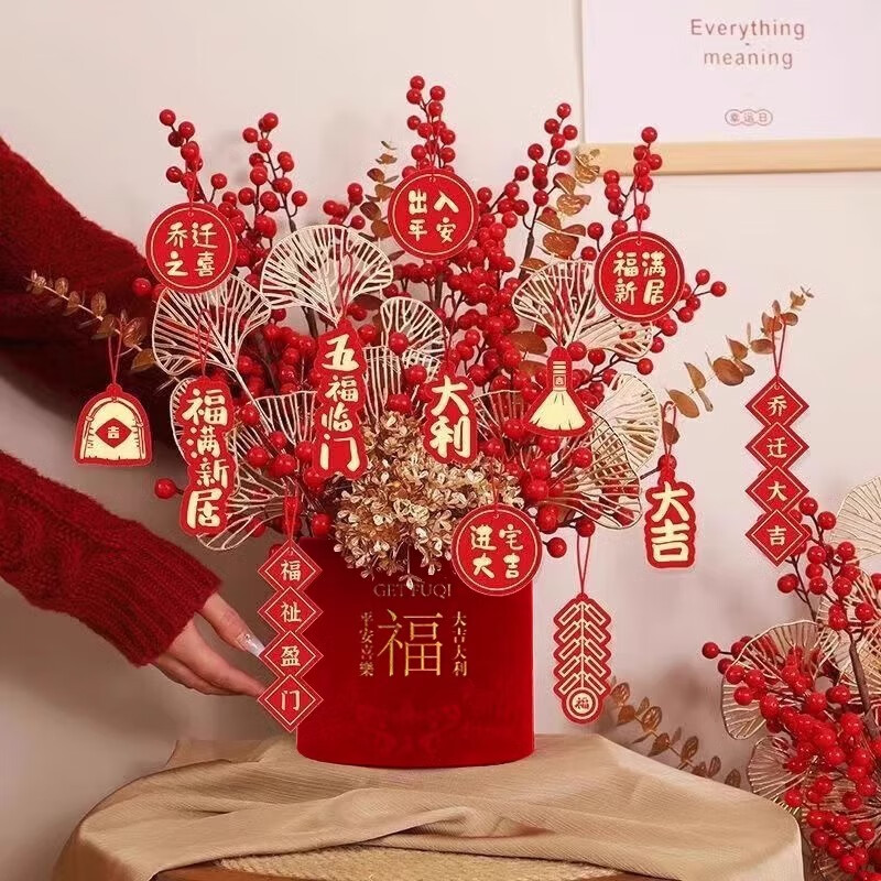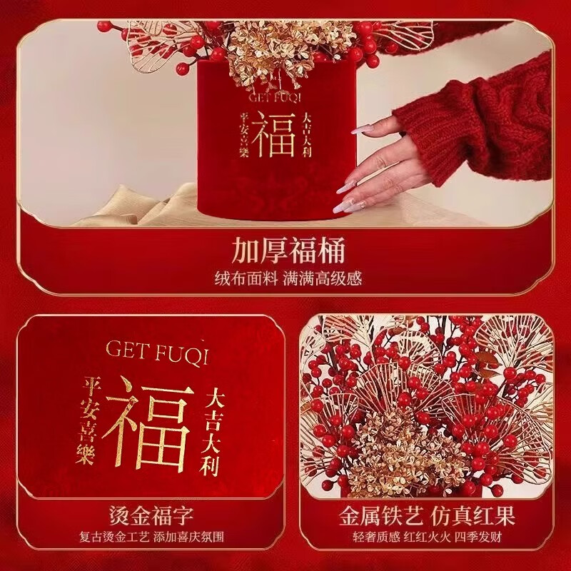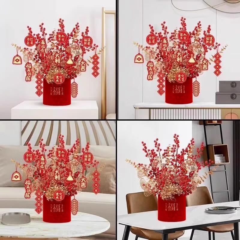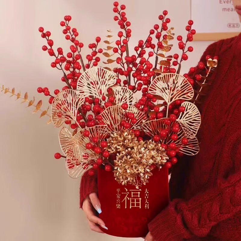 New Year's Eve Flowers New Year Ornaments Fortune Fruit Decoration Simulated Flowers New Year Blessing Bucket Flower Arrangement Red Fruit Snake Year Spring Festival Hug Bucket Housewarming-Pomegranate-Fuka