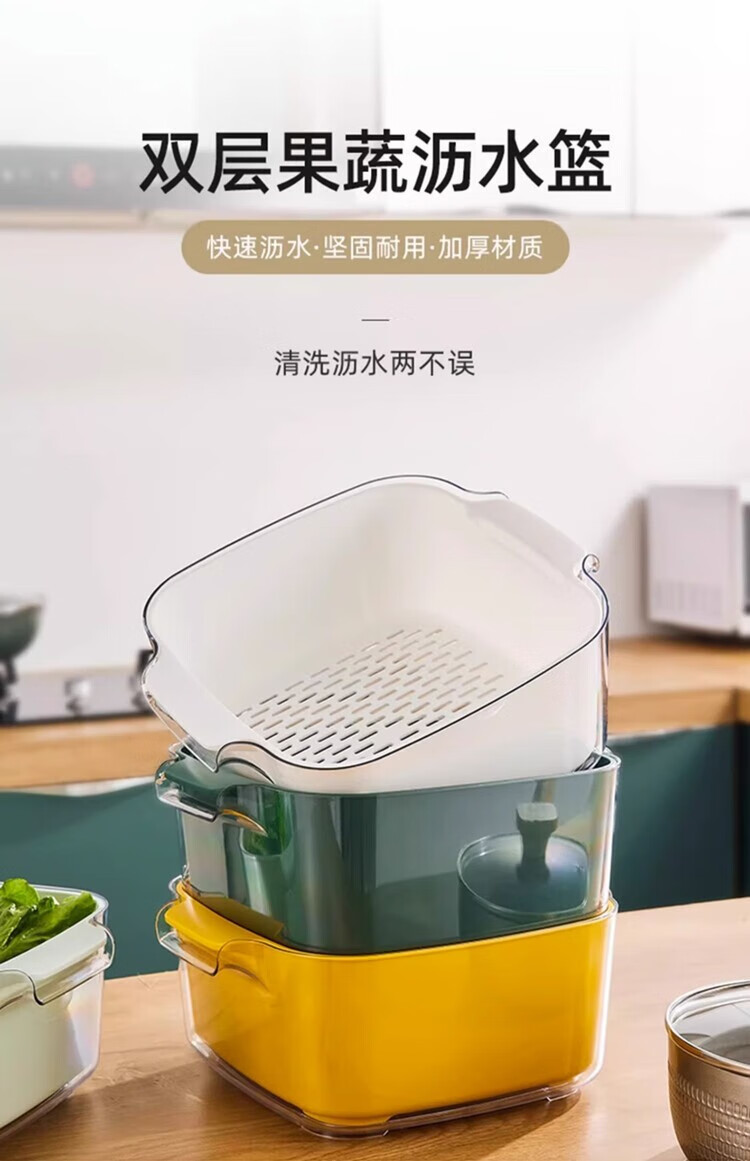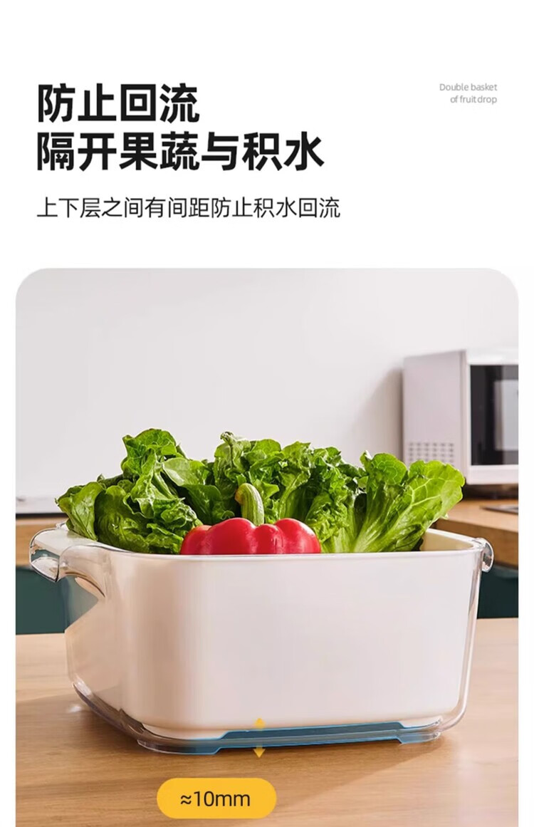 Magic Bean Shenghuo double-layer sink drain basket eight-piece set multi-functional kitchen home new fruit plate living room washing vegetable basket 6-piece set mint green large + medium + small