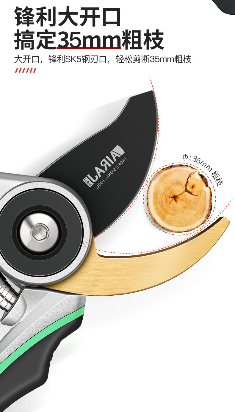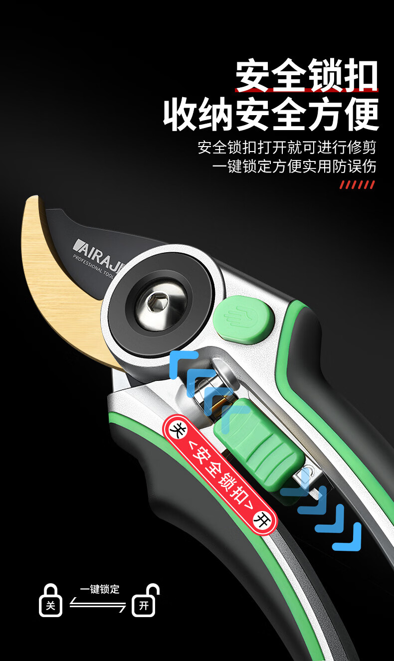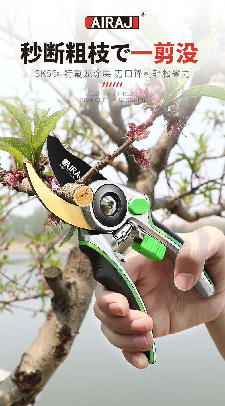 Jingyouyu Japanese Seiko gardening scissors garden pruning shears fruit tree pruning labor-saving powerful large pruning pruning scissors artifact Black Warrior 6th generation imported SK5 steel waist box