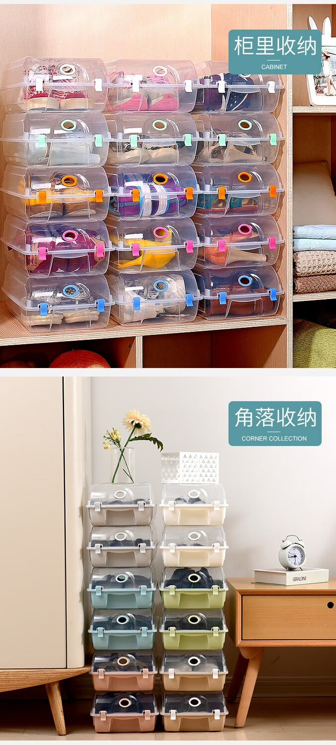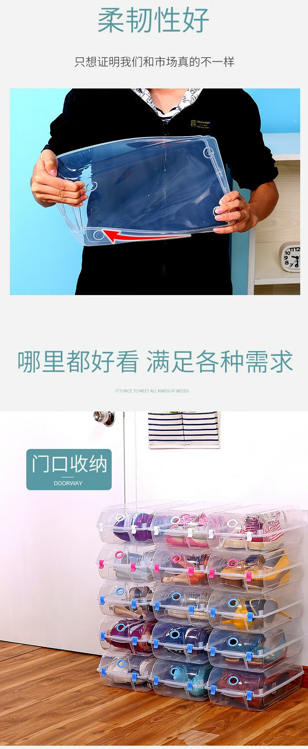 Naiben shoe storage rack space-saving multi-layer household dust-proof shoe box storage box transparent plastic shoe box storage drawer type L size 10 pieces - Maca blue within 45 yards
