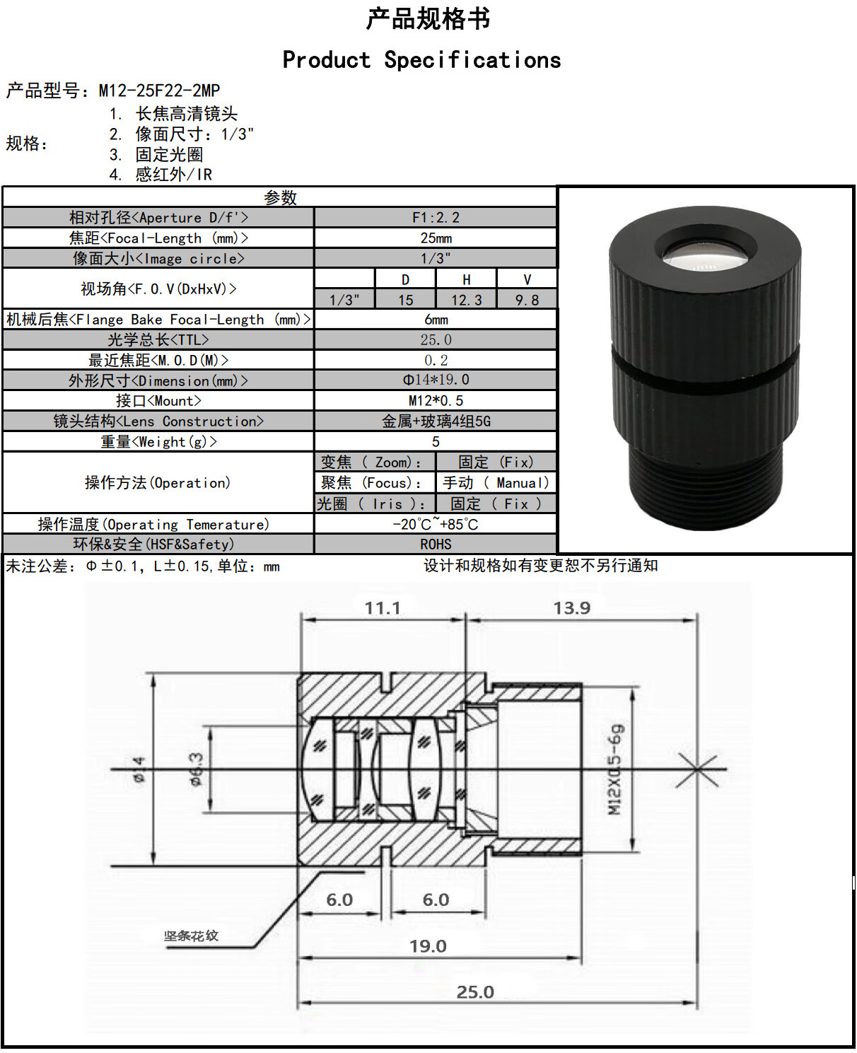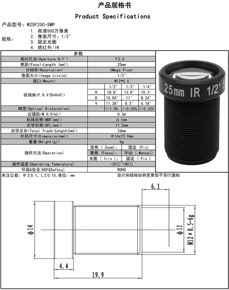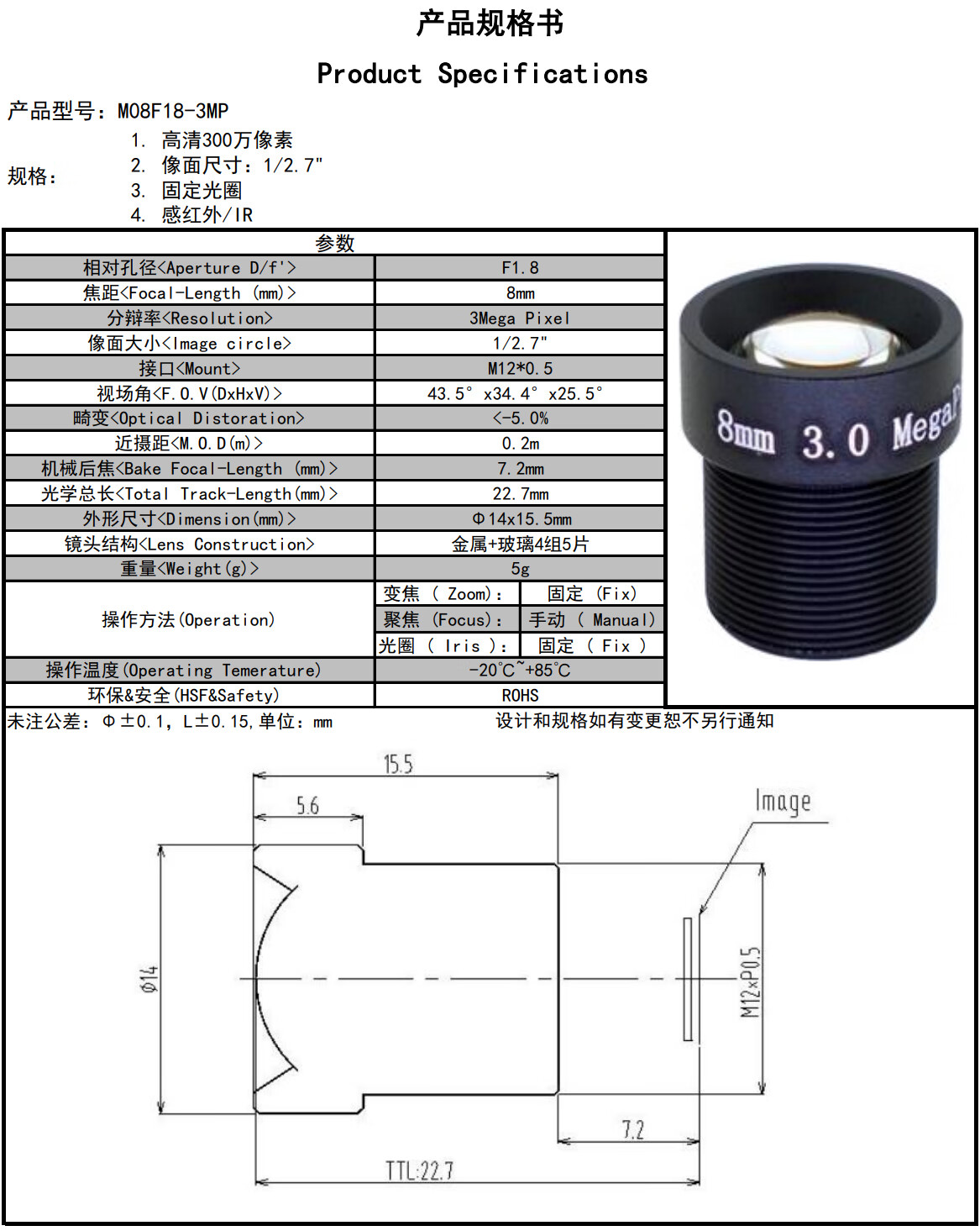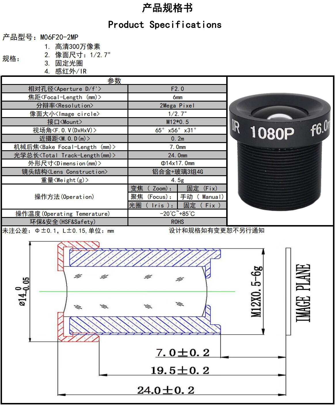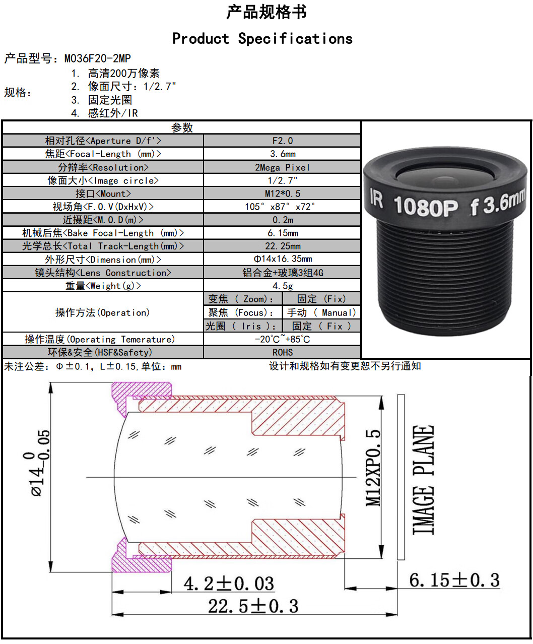 5 million HD surveillance camera infrared M12 lens 2.84681216mm 1080p 4mm